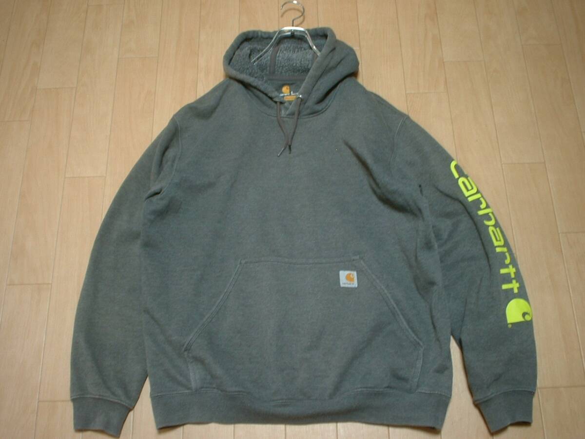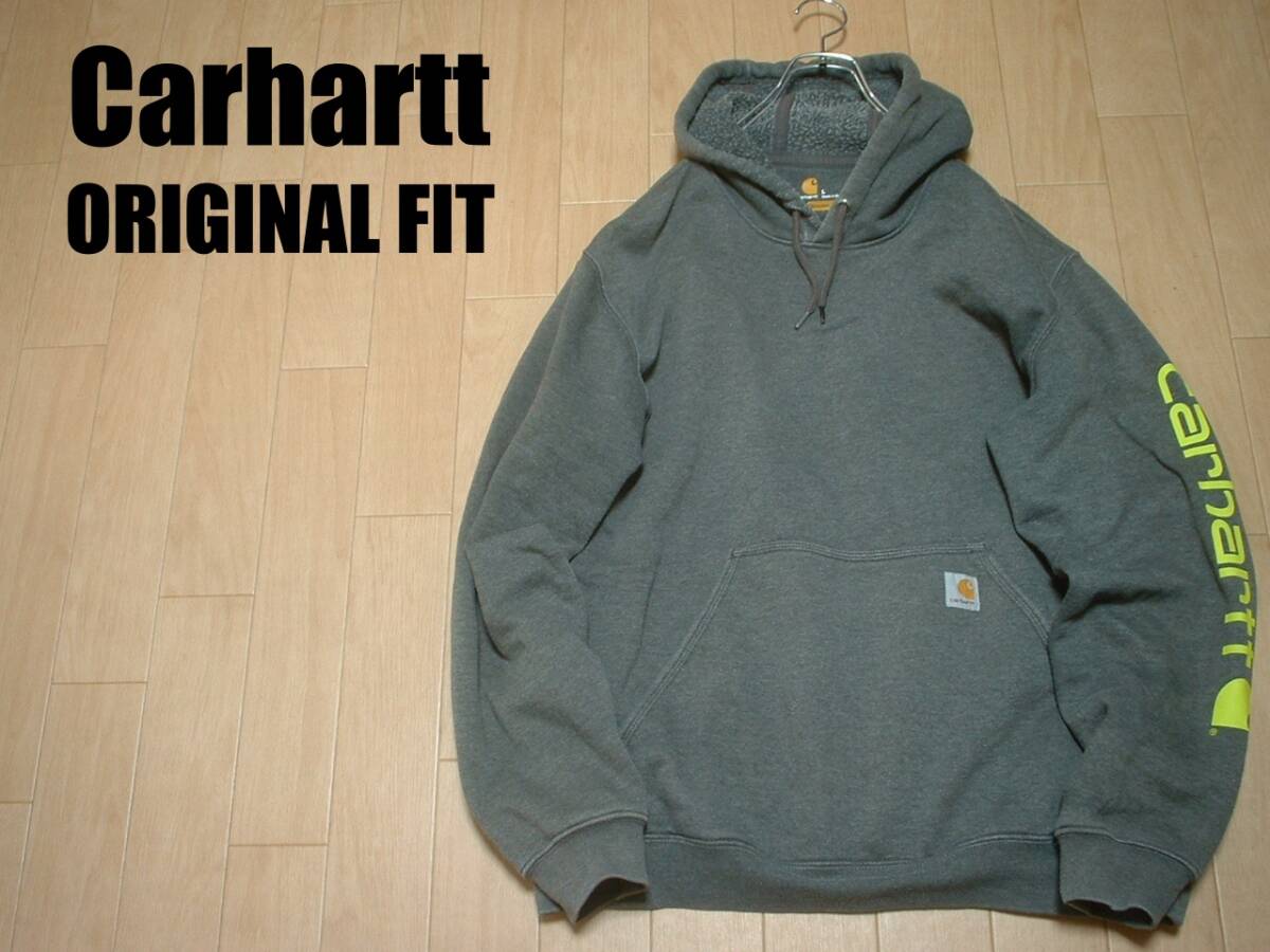 CarharttワンポイントスウェットパーカーLオリジナルフィット正規カーハートグレーORIGINAL FITフーディトレーナーデトロイトアクティブ