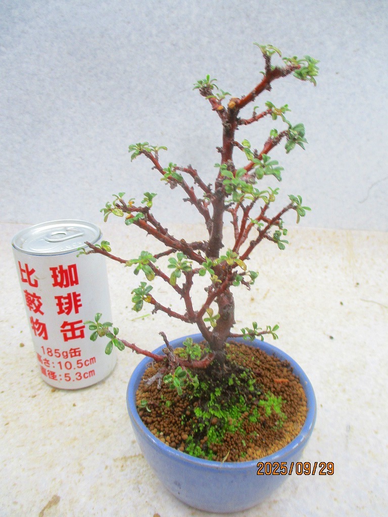 [緑の市場] ミニ盆栽 白紫檀(91867均釉丸鉢)全高:20㎝【小型送料】*同梱包対応「まとめて取引」厳守*60サイズ送料明記 同梱包ご希望は「まとめて取引」でお手続きして下さい。 *同梱包は[緑の市場]のタイトルでの出品商品に限ります。類似画像で他IDの出品にご注意下さい。* 単品(セット品は1組)発送ご希望の際は「まとめて取引」の手続きをしないでください。入札前に必ず下記の「発送方法」に記載の送料を確認してください。 ヤフオクの取引においてメッセージは特に必要ありません。挨拶などを省略できる取引システムですし取引ナビの通知で進行状況が判るので都度の連絡(送金や受け取りのメッセージ)は不要です。配送日時指定や連絡事項のみお知らせください。双方合理的に進めましょう。また、お急ぎの方は入札をご遠慮ください。業務時間内での対応になります(土日祝休業)。 寸法は鉢を含む全高です。(樹高ではありません。) 一緒に撮影しているスケールまたは比較物をご参照ください。 飲料缶は高さ約10㎝、直径約5㎝です。 500mlペットボトルは高さ約21㎝です。 ■画像の様子から経時変化しますので撮影日(画像記載)からの変化はご了承下さい。 *花物・実物は特にご注意下さい。 画像(撮影時)では開花品でも、お届け時は花終わりを想定して下さい。 ◎落札が無い場合は、自動再出品が継続されます。 撮影から2か月経過した場合、どんどん開始価格が下がりますが、商品の劣化も進みますので、 撮影日からの期間経過品はある程度の劣化を想定で入札にご参加下さい。 商品により90日間程度(物によりそれ以上)同じ画像を使用しますので、必ず撮影日をご確認下さい。 |