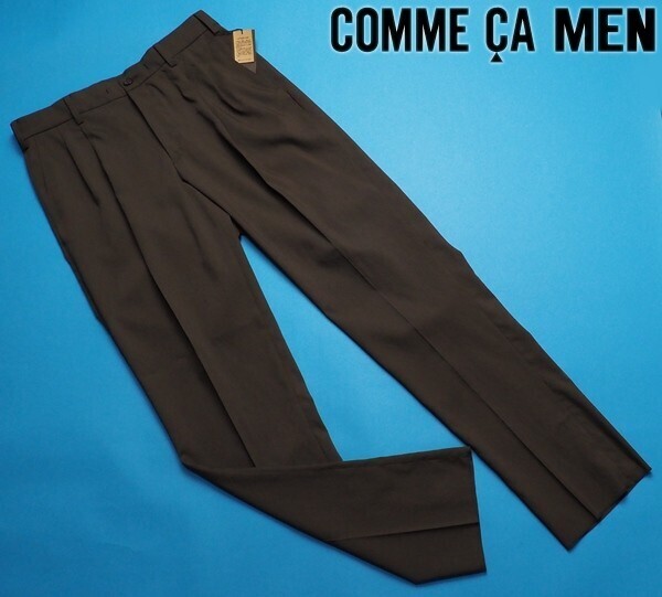 新品定価2.8万円 COMME CA MEN コムサメン 10マンス 中空ポリエステルカルゼ 2プリーツスラックスM茶(14) 25PA06