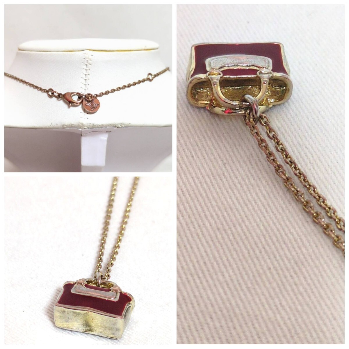 セリーヌ CELINE レッド系×ゴールド系 ブギーバッグ ネックレスでございます☆彡 |