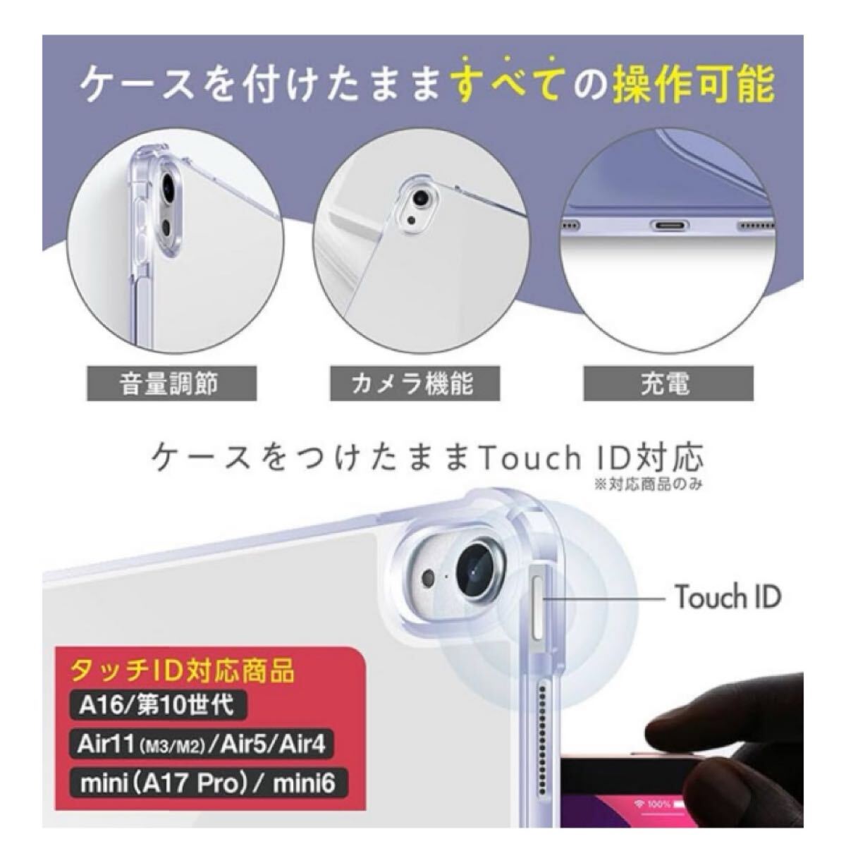 ■透明マット加工バックケースのサイドエッジ部分(ケースの淵)は、 柔らかいソフトTPU素材のフレキシブルエッジ加工なので外部からの衝撃吸収に優れているのはもちろん、iPadのケースへの取り付け、取り外しも容易にできます。また良質TPUなので、異臭や経年による色変化が少ないのも魅力です。