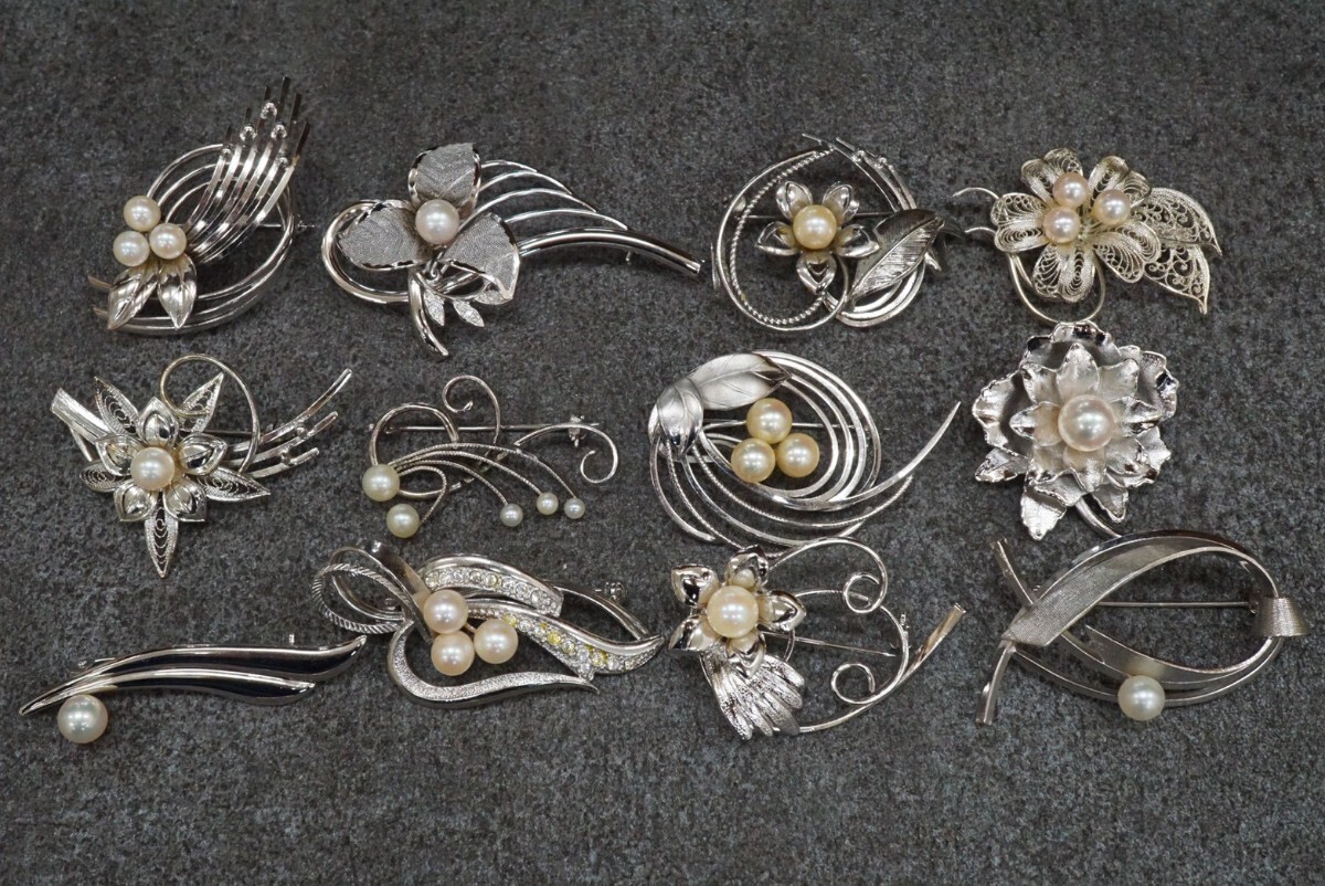 C218 全てアコヤ真珠 本真珠 ブローチ 12点セット パール アクセサリー ヴィンテージ 大量 まとめて おまとめ まとめ売り 装飾品