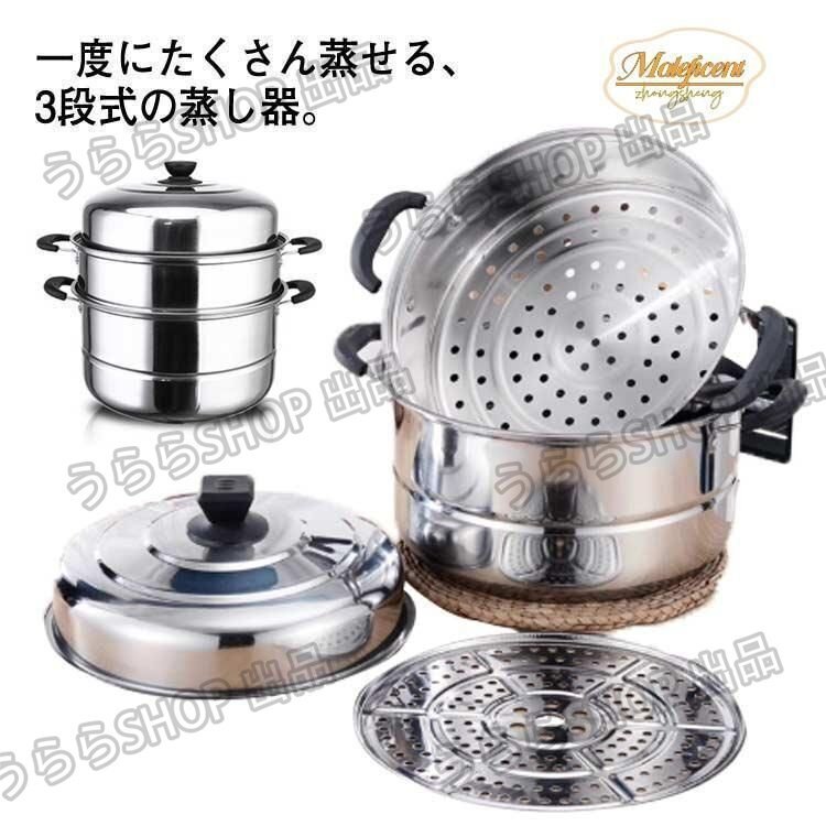 蒸し器 三段 30cm 大容量 ステンレス せいろ 蒸籠 IH対応 ガス火対応 蒸し鍋 スチーム調理器 両手鍋 蓋付き ステンレス鍋 調理鍋 xhw0141