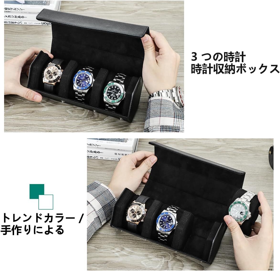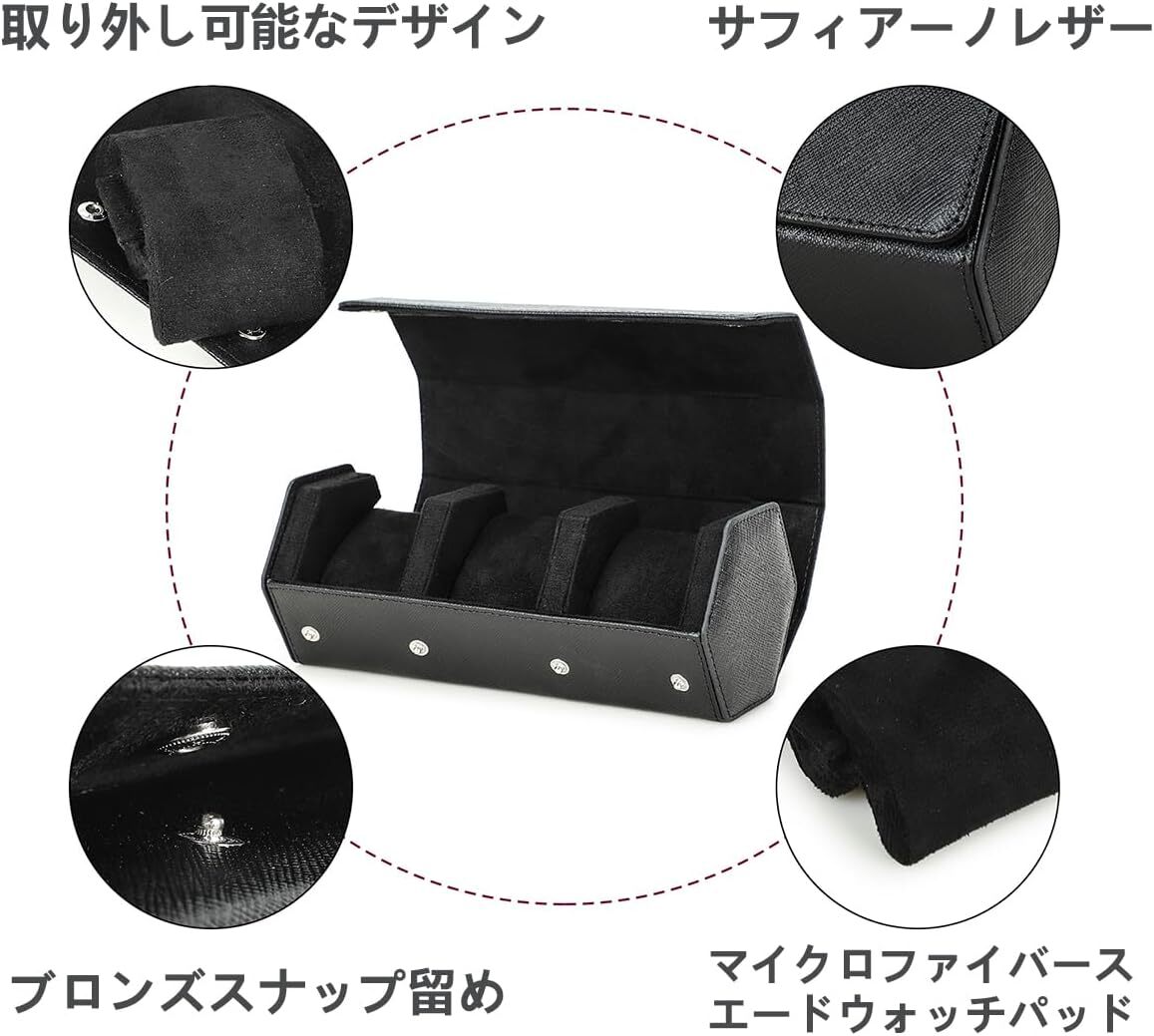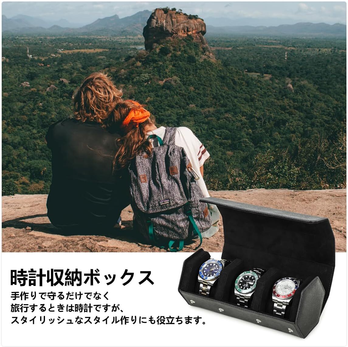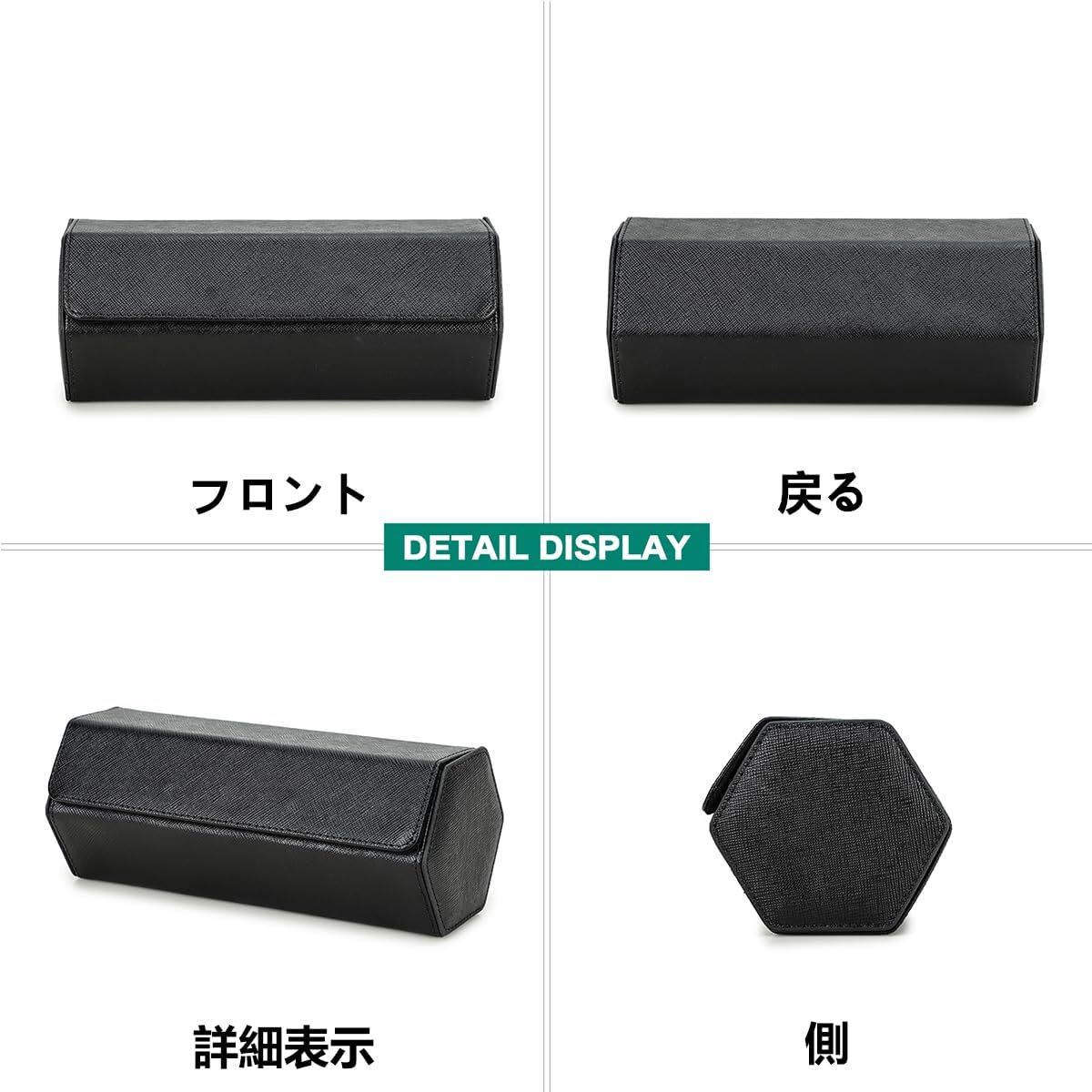 腕時計収納ケース 腕時計ロール ブラック 黒 3本用 六角型レトロ 本革時計ケース インテリアレザー 時計携帯 出張 持運び 耐衝撃 ギフト