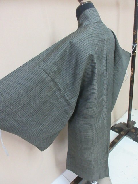 商品名 | 1円 中古 羽織 正絹 男性用 和装 和服 アンティーク 格子 無地 幾何学 単衣 身丈103cm 裄66cm【夢職】★ |