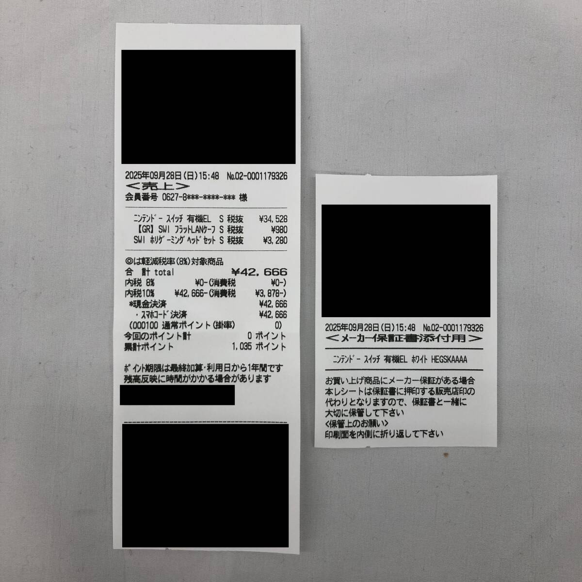 | ご覧いただきありがとうございます。 お渡しするのは画像に写っている物が全てです。 商品の色は画面の見え方等により、実物とは異なる場合がございます。 入札される方は掲載画像をよくご覧になっていただき入札をお願い致します。 状態 ・外箱開封済みですが未使用品です。 ・レシート日付【2025/09/28】 ・店舗印はありません。 ・レシートにスイッチ以外の記載がありますが、お渡しはスイッチのみです。 ・その他の状態などは画像にてご確認ください。 発送について ・送料無料です。 出品にあたってできる限りチェックをして記載していますが、当方の気付かない点、説明不足、記載間違い、万が一見落とし等があった場合は商品の現状を優先とさせて頂きますのでご了承ください。 素人による査定のため、上記以外の不具合などがある可能性がございます。 細かいことを気になされる方・神経質な方は入札をご検討頂きますようお願い致します。 ご質問に関しましては、専門的な質問などにはお答えできない場合がございます。 オークション終了日、土日、祝日にご質問をいただけましても、お答えできない場合がございます。 併せてご了承ください。 ※電話対応不可 落札後のご連絡に関しましては「取引メッセージ」のみにてお願い致します。 電話をおかけになった場合でも担当者不在の時間が多いため、当店ではトラブル防止のため電話対応不可とさせていただきます。何卒ご了承下さい。 | ||