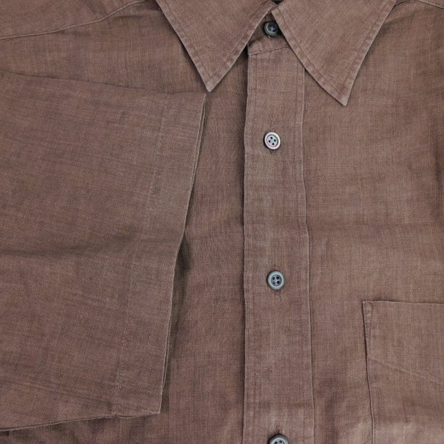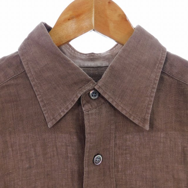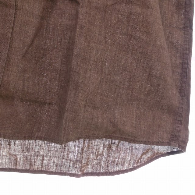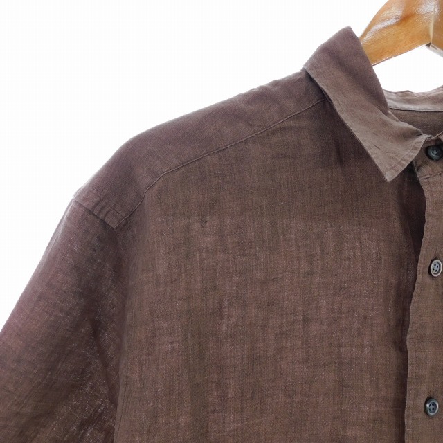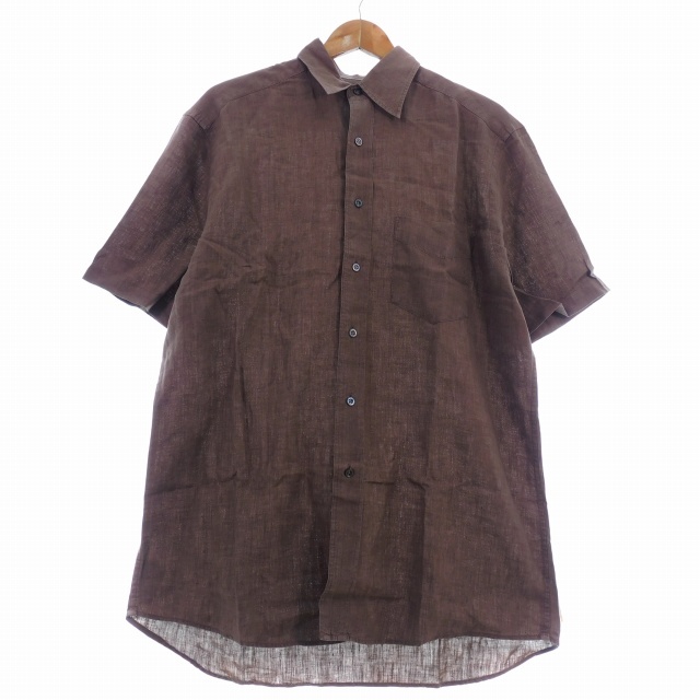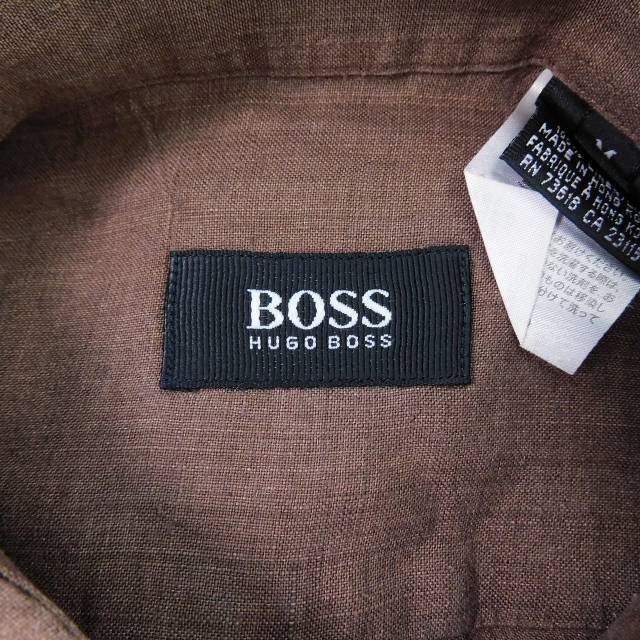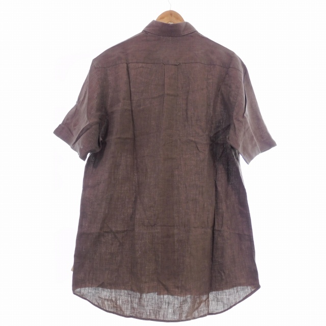 ヒューゴボス HUGO BOSS ステンカラーシャツ 半袖 カジュアル 麻 リネン 無地 M 茶 ブラウン トップス /T2 メンズ