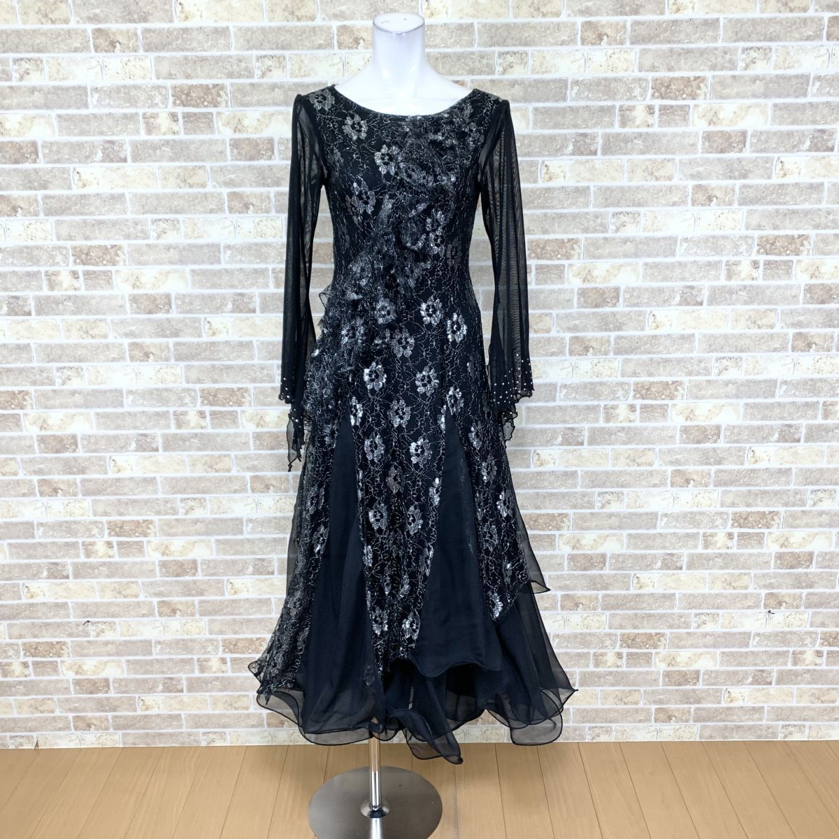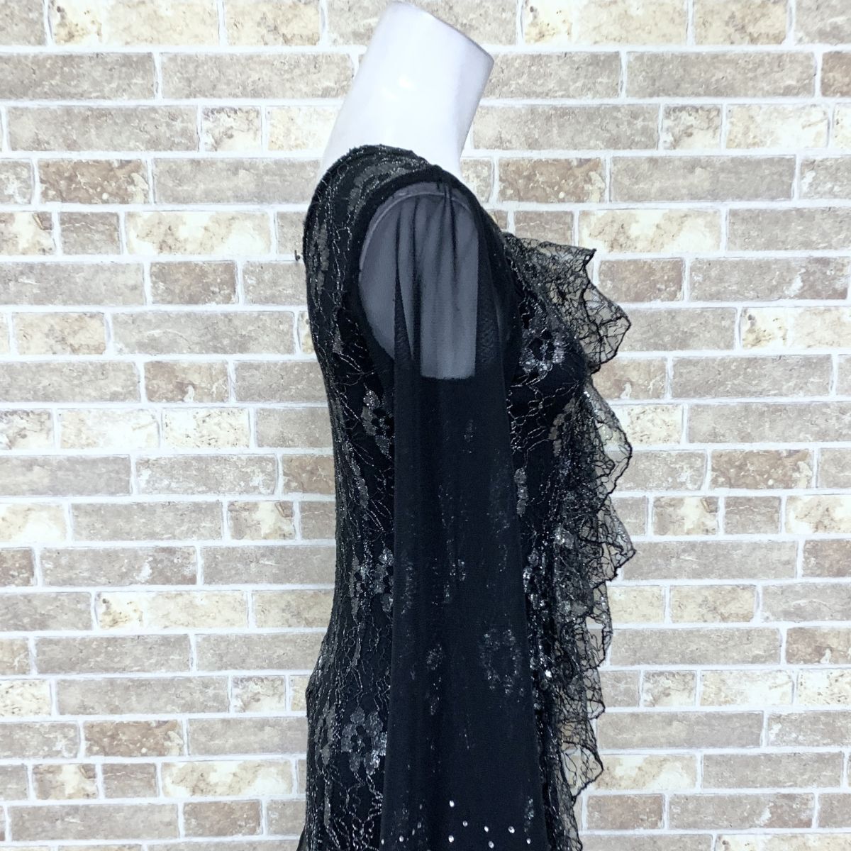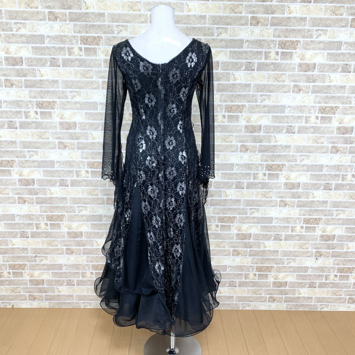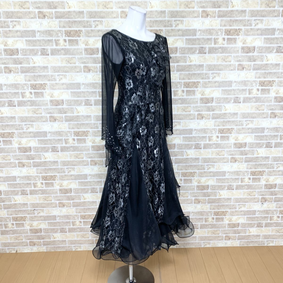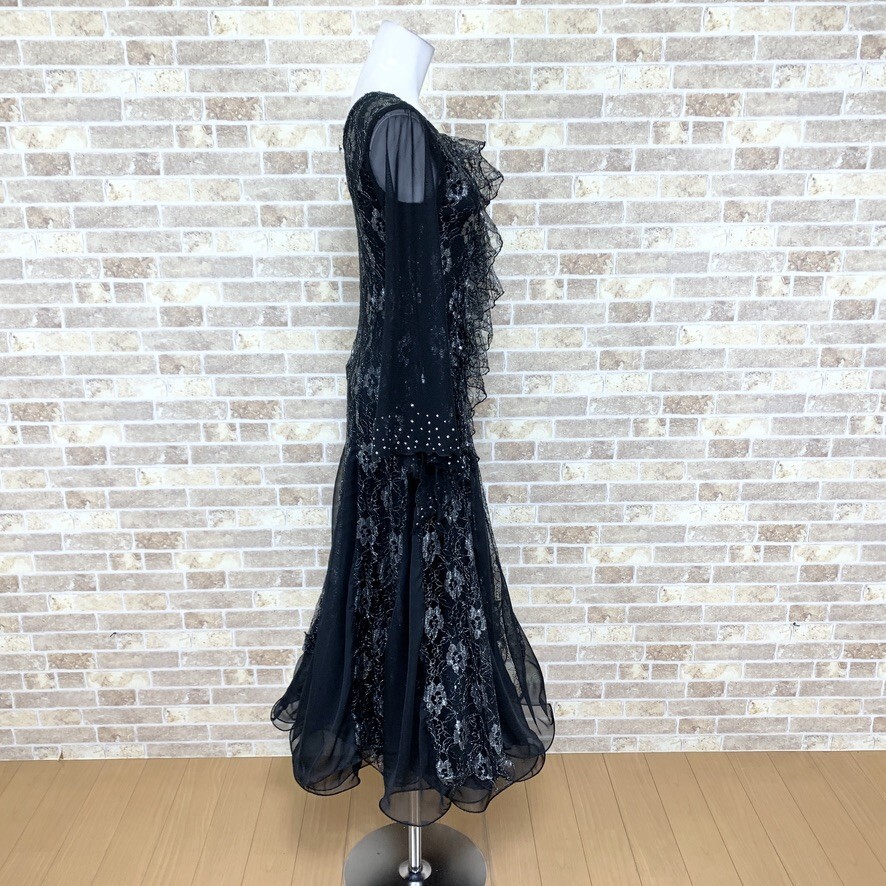1円 社交ダンスドレス ICHIOKU 黒系 ダンス衣装ドレス カラードレス  発表会 舞台衣装 イベント 中古14788