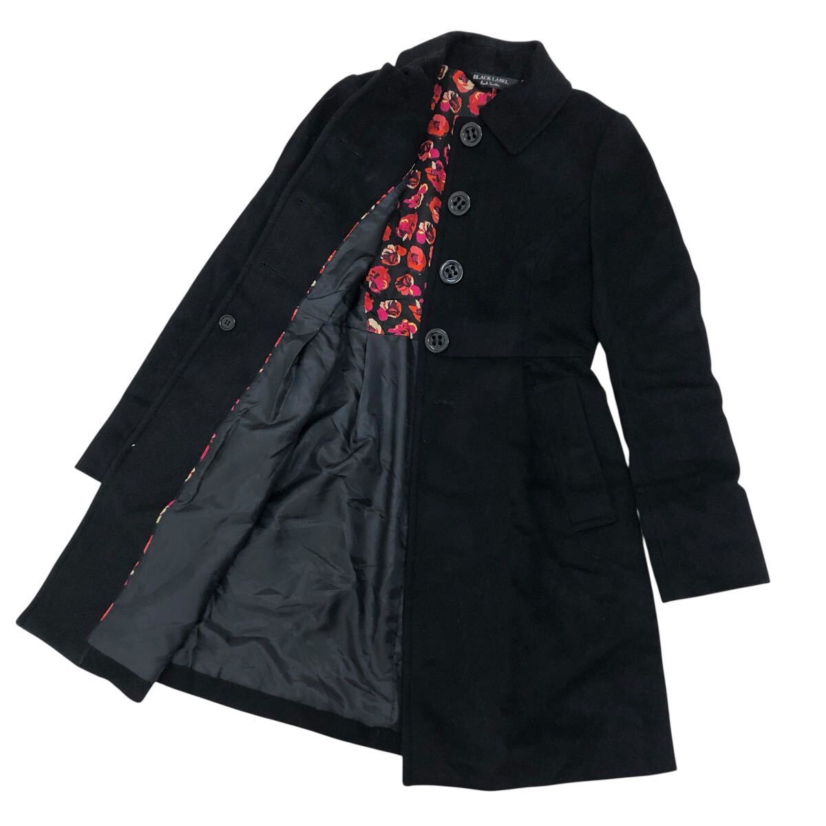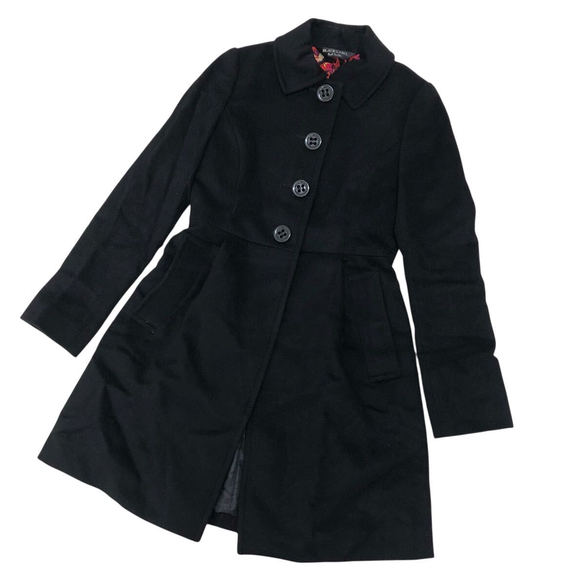 10K338-86 Paul Smith ポールスミス BLACK LABEL ブラックレーベル 長袖 ステンカラー コート ロング アウター 上着 黒 レディース 女性用 38
