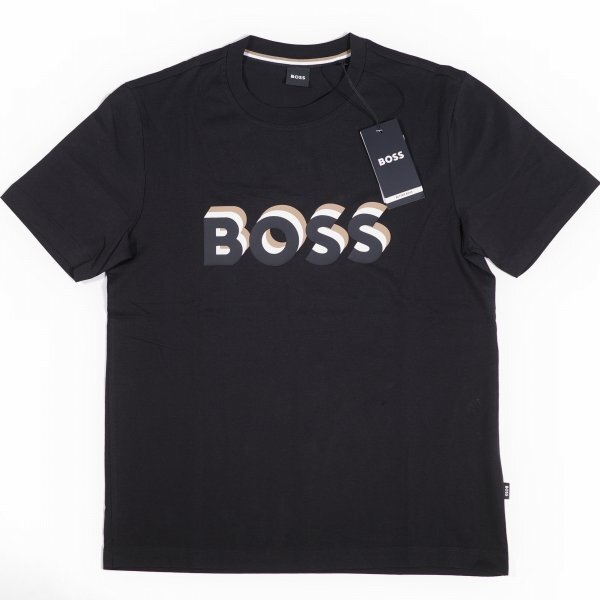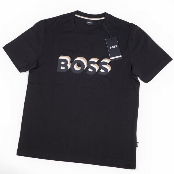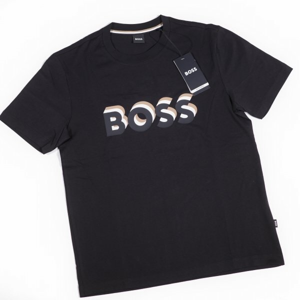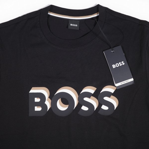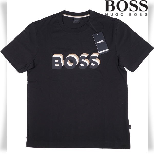 定価1.9万 BOSS ボス メンズ 最高級ライン ロゴ コットン綿 半袖 クルーネックTシャツ S ブラック ヒューゴボス |