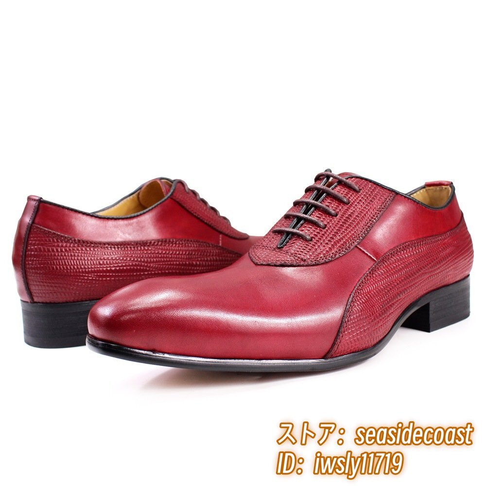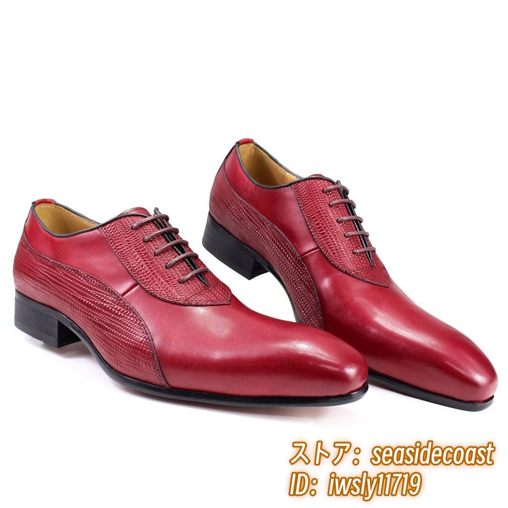 定価11万超■牛革 レザーシューズ メンズ 紳士靴 ビジネスシューズ 職人手作り 本革 革靴 ドレスシューズ 超希少 宴会 結婚式 赤系 25.5cm