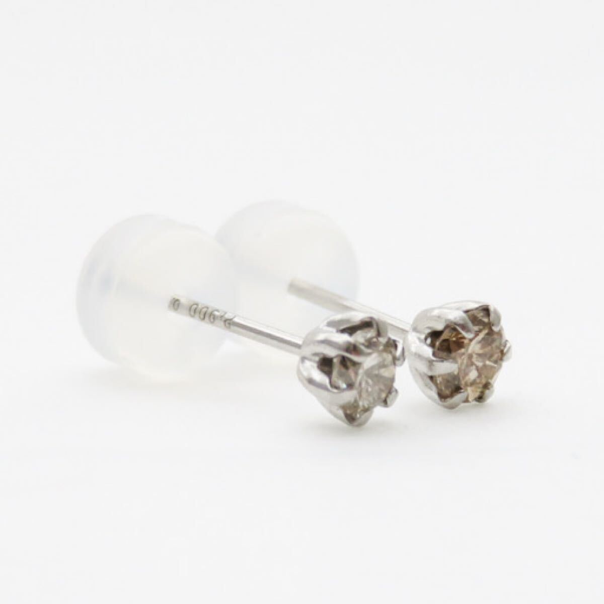 上質なPt900(プラチナ)素材に、天然ダイヤモンドを片耳0.15ctずつセットした一粒スタッドピアスです。