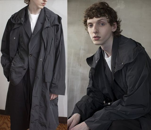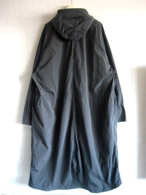 “AUBETT オーベット” より、歩く度に裾が揺れるきれいなAライン・オーバーサイズシルエットのナイロンフーデッドコート。