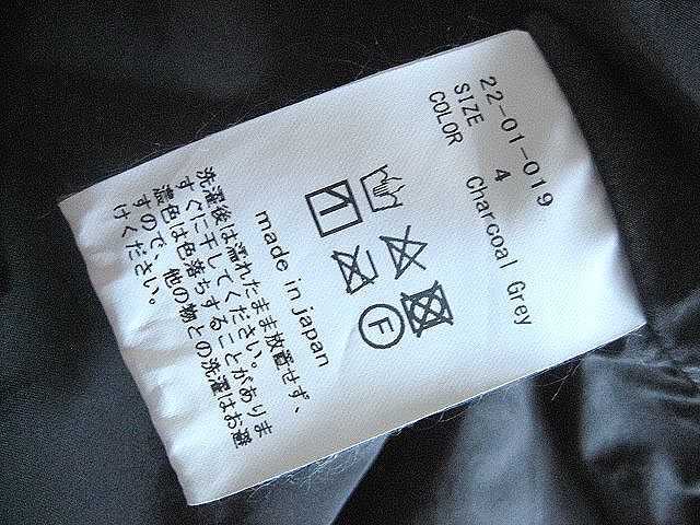 22-01-019 SIZE:4 肩幅 約55cm 脇下身幅 約68cm 袖丈 約59cm 着丈 約118cm