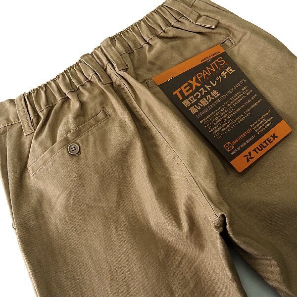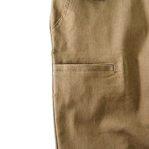 新品 未使用 紙タグあり Lサイズ(画像では、別サイズを使用) ウエスト84cm~94cm ※商品に記載されたサイズ・寸法です※ ウエスト84~94cm(内回り1周・ゴム仕様) 股上26.5cm 股下73cm 裾幅15cm 腿幅28cm(股下10cm部分) 綿71% ポリエステル26% ポリウレタン3% ベージュ |