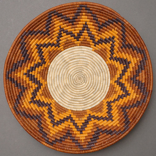 ウガンダの職人が丁寧に編んだデラックスな皿型バスケットです。