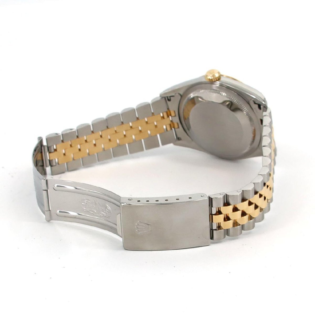 1988年から2005年頃まで製造されていたデイトジャスト36mmのRef.16233G。イエローゴールドとステンレススチールを組み合わせた華やかなコンビモデルです。ゴールドコンピューターダイヤルは、ロレックスのロゴが並ぶ独特のパターンにダイヤモンドインデックスをセットした、個性的なデザインが特徴です。パワーリザーブ約48時間を備えるCal.3135を搭載。流行に左右されない普遍的なデザインは、長年にわたり世代を超えて愛され続けています。