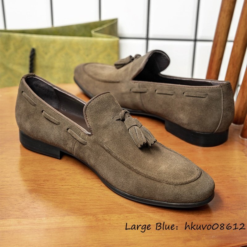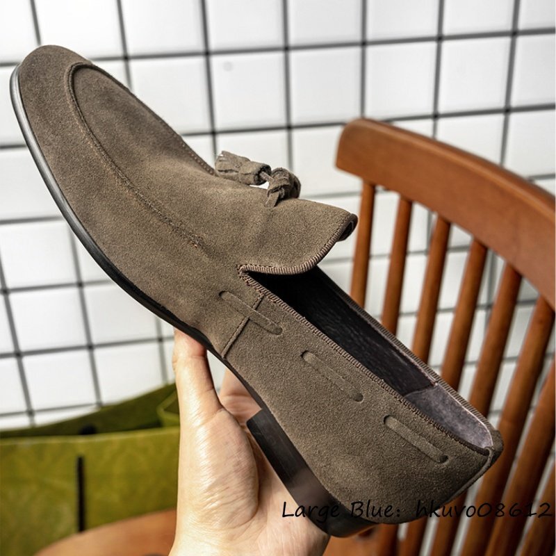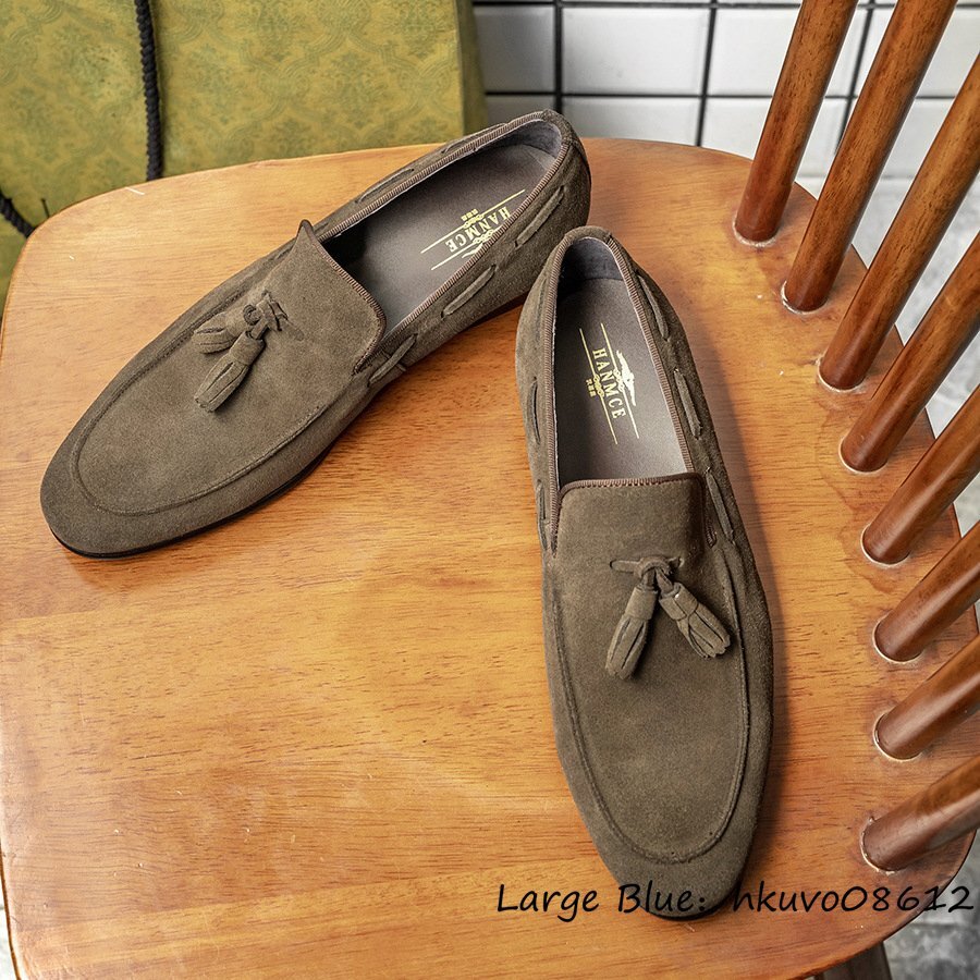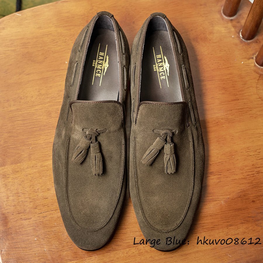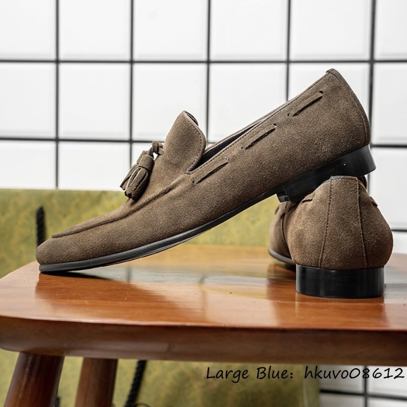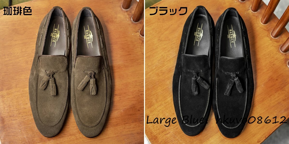 超人気★美品 スエード革 ビジネスシューズ メンズ タッセルローファー 職人手塗り上げ 本革 レザーシューズ 革靴 紳士靴 珈琲色 24.5cm