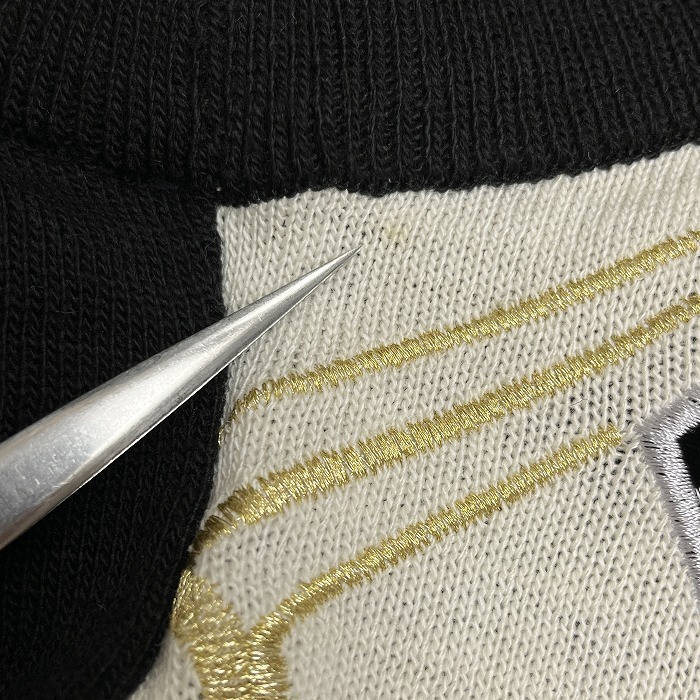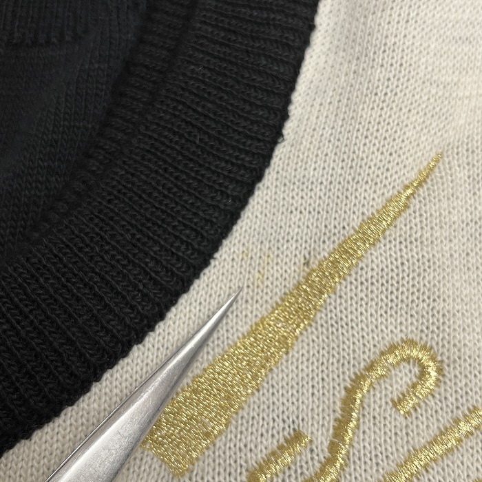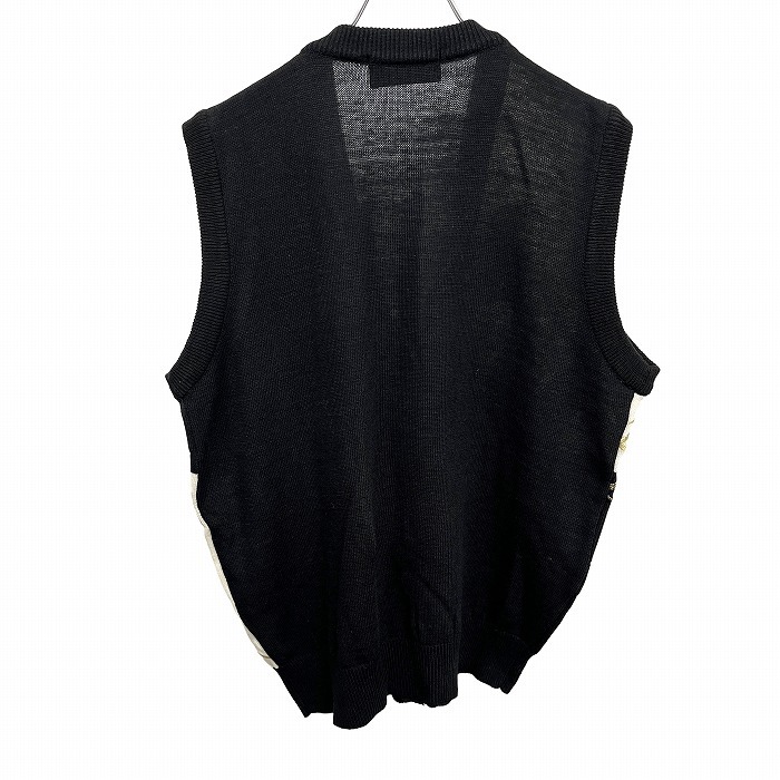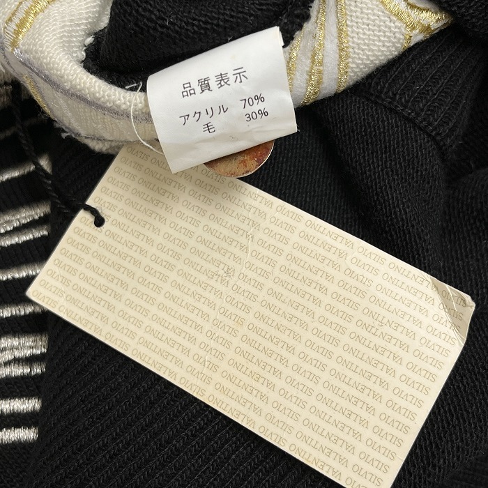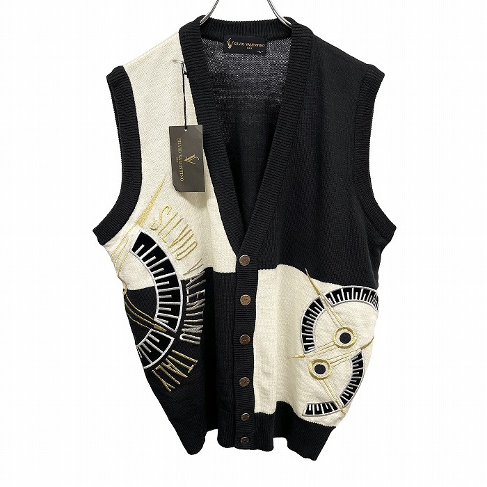 商品タイトル | 【新品/訳アリ】SILVIO VALENTINO ITALY ニット ベスト 刺繍 ロゴ アクリル×毛 L ブラック 黒×オフホワイト×ラメゴールド メンズ |