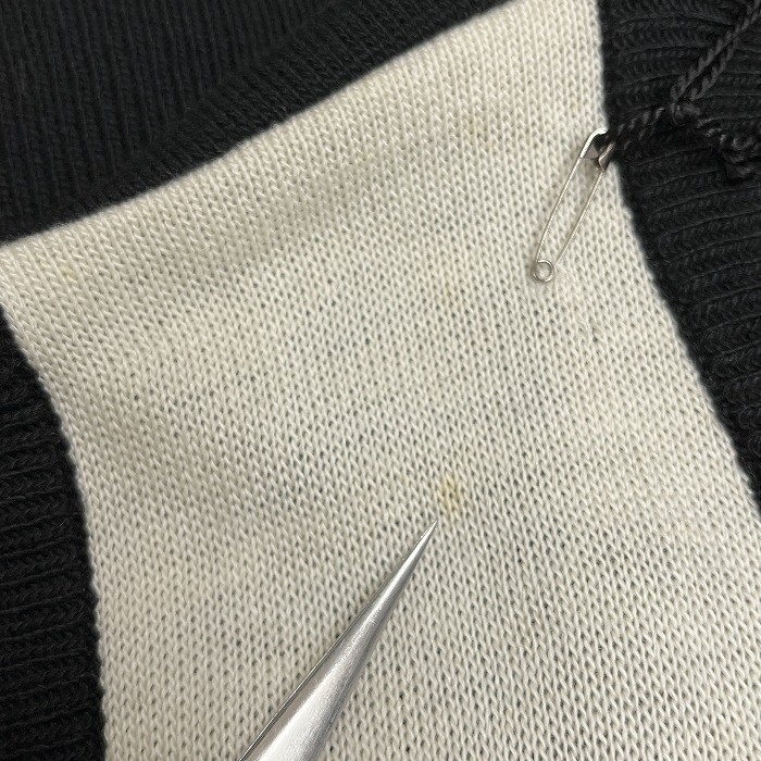 商品状態・ディテールなど | (※実測寸法など、多少の誤差はご容赦下さい。) (※商品は衣類の場合は全て畳んで保管しており、服飾雑貨も靴以外は必要に応じ畳んで保管しております。保管や梱包による畳み皺などはご了承下さい。) ●気になったダメージの場所と種類: ・所々:小シミの箇所 ・全体:- ・肩:- ・襟:- ・胸:- ・腹部:- ・裾:- ・右袖:- ・左袖:- ・袖口:- ・背中(上):- ・背中(下):- ・内側:- ●その他ディテール:ボタン留め、Vネック、ポケット無し ●付属品など:- ●その他:- |