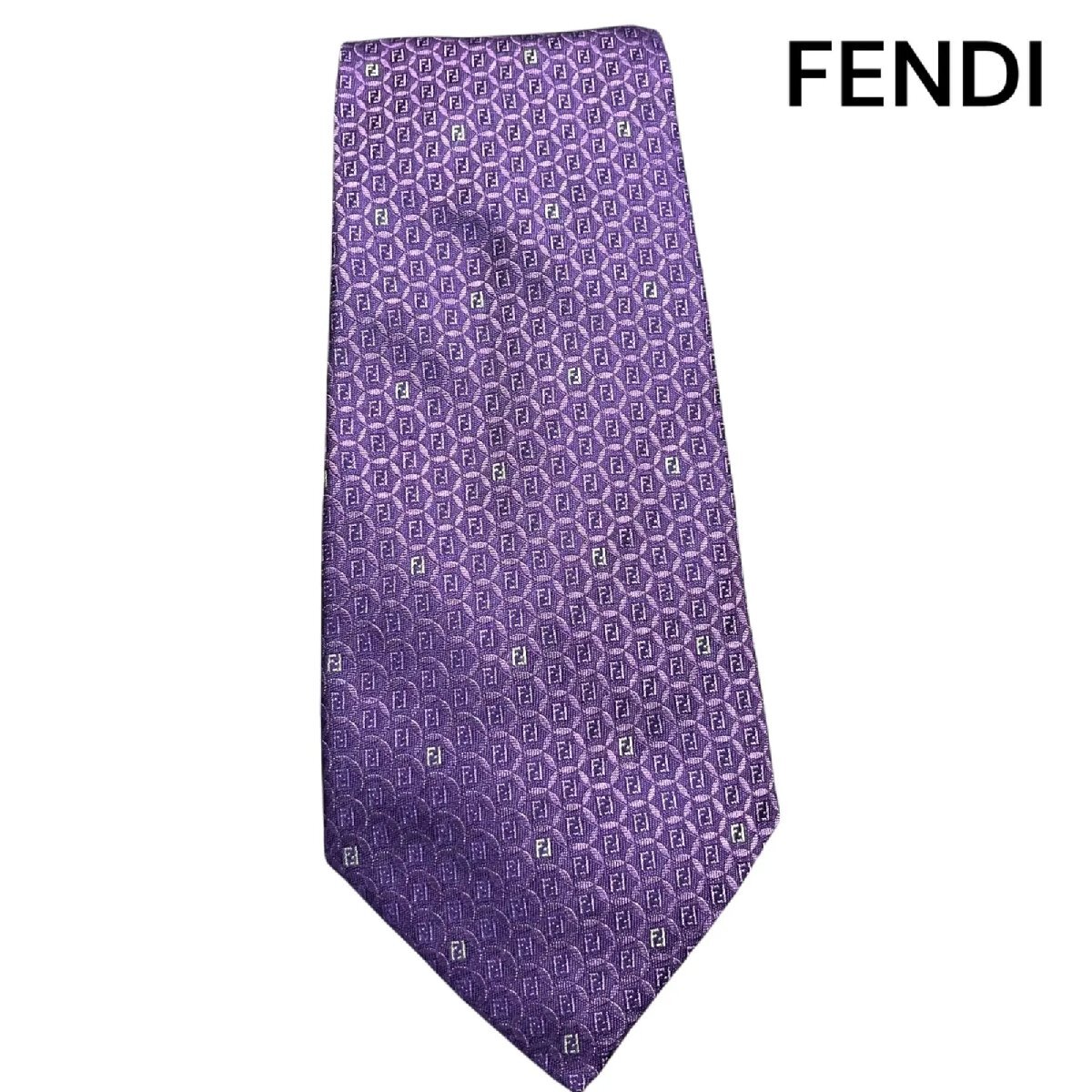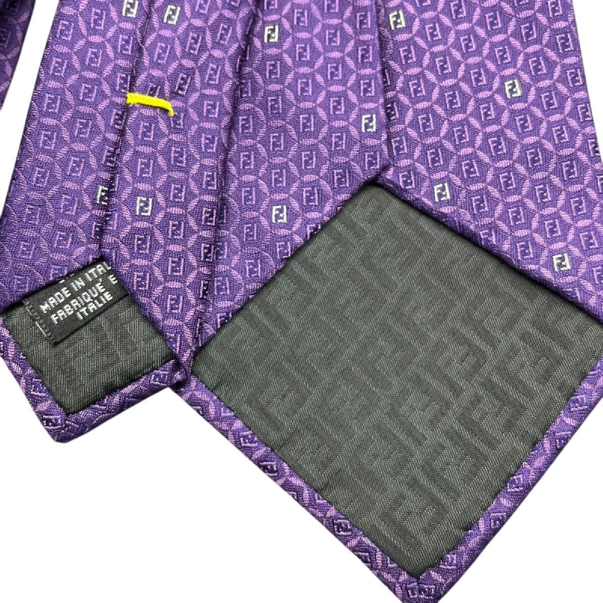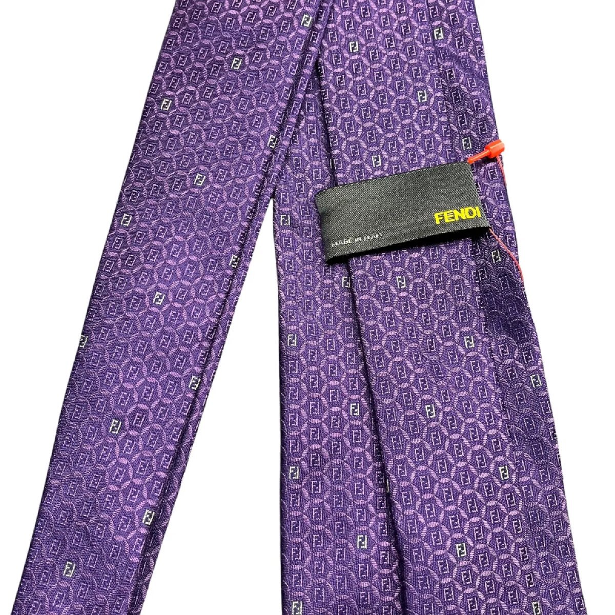 美品 フェンディ FENDI ロゴ パープル シルク ネクタイ メンズ S5P198