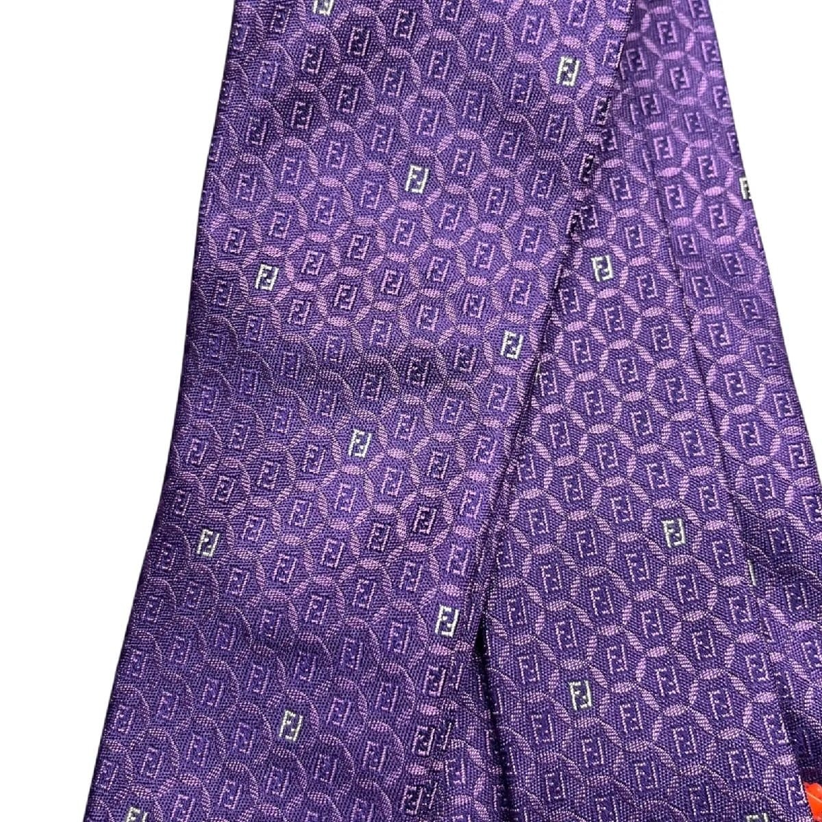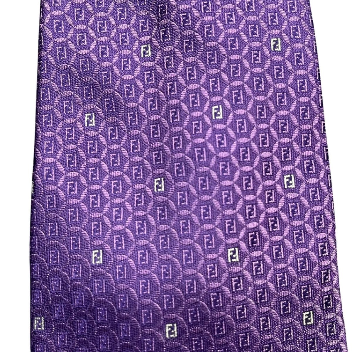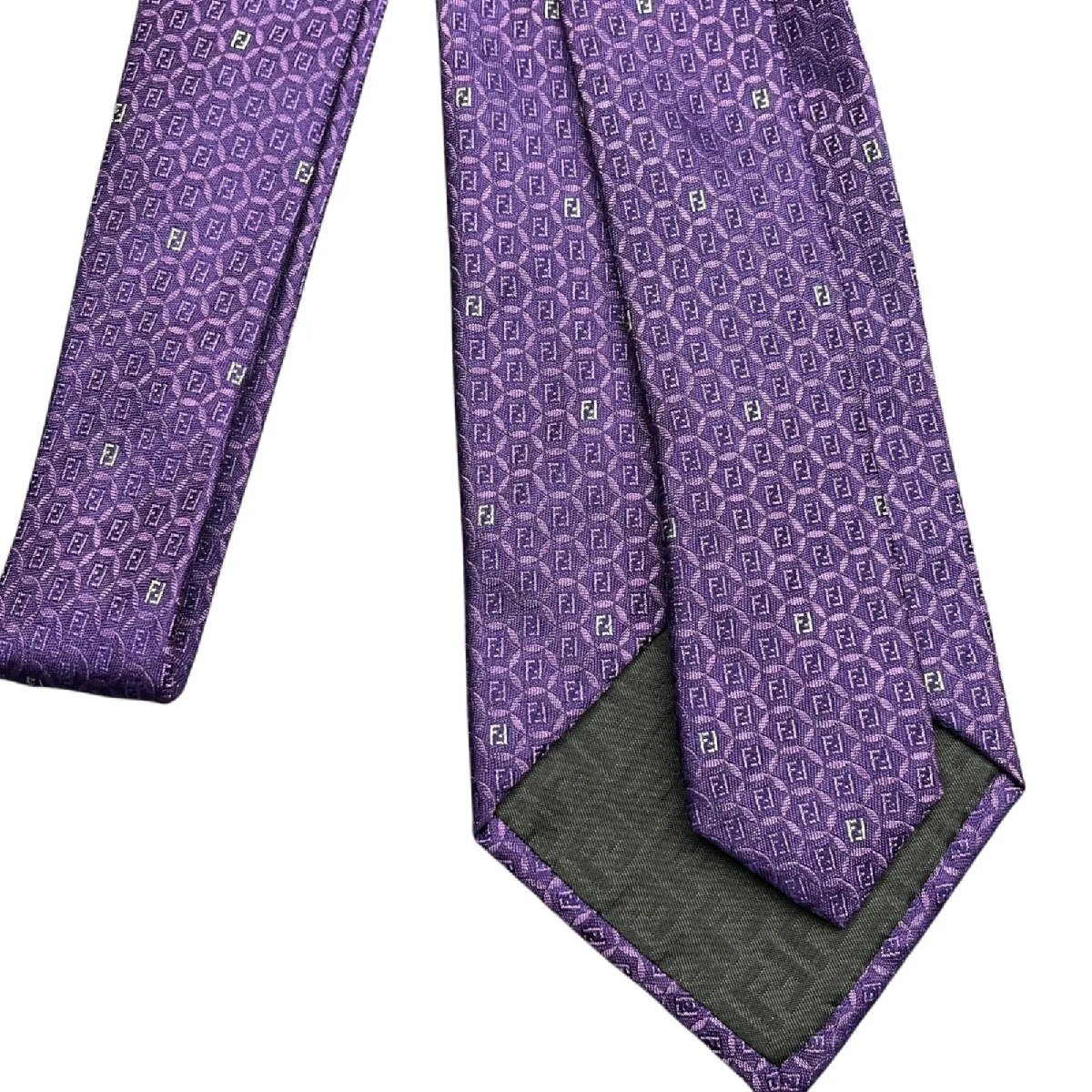 美品 フェンディ FENDI ロゴ パープル シルク ネクタイ メンズ S5P198