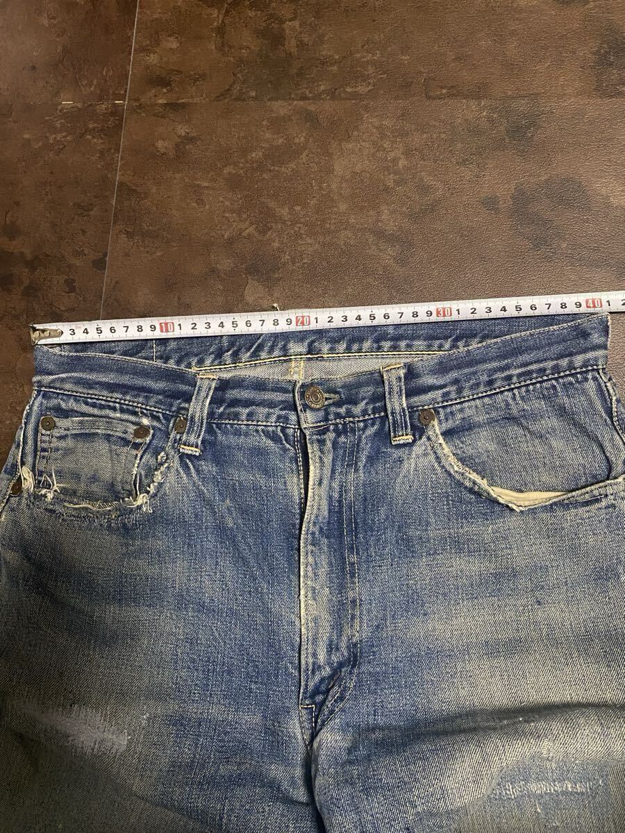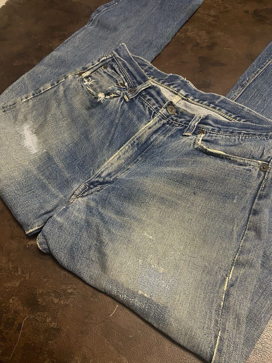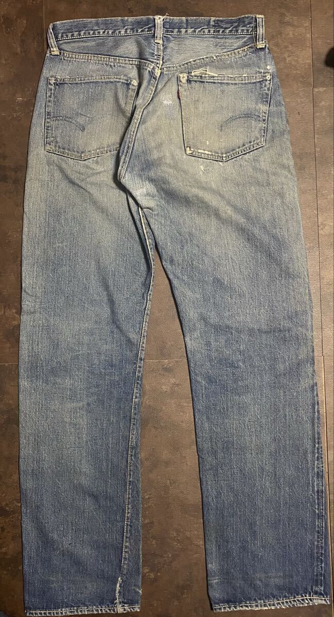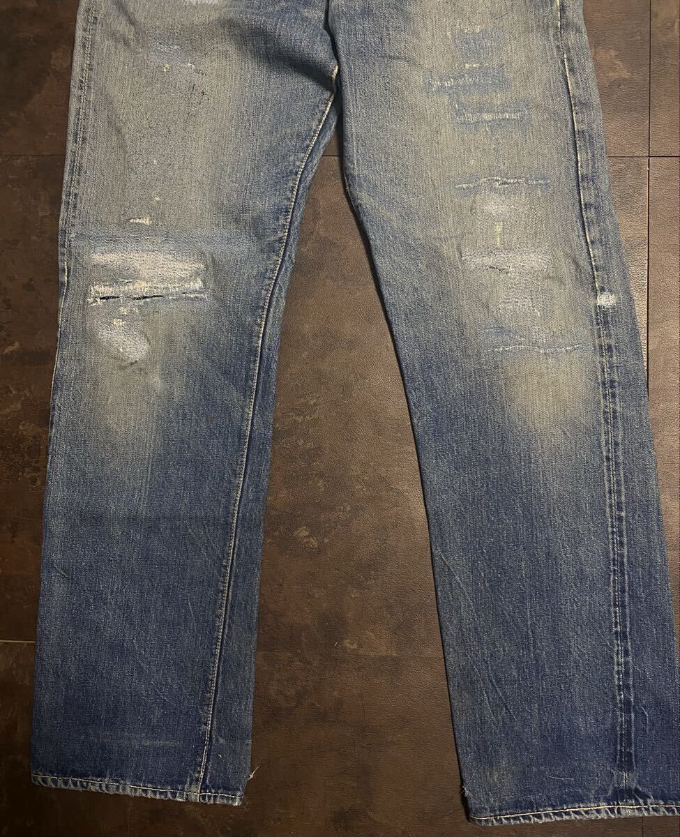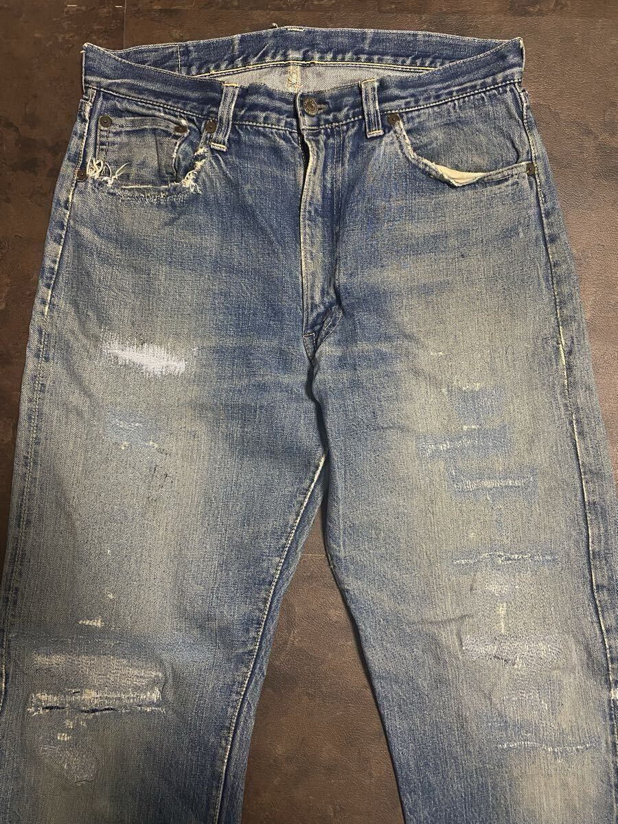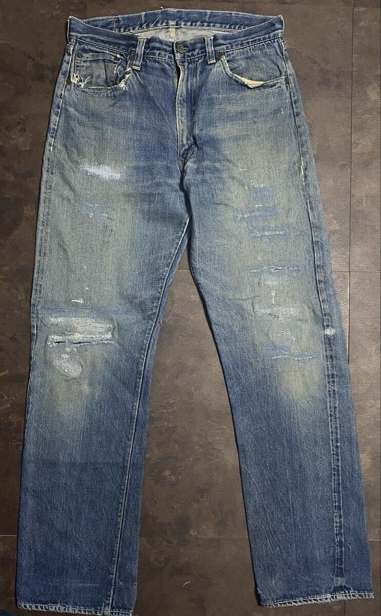 50年代リーバイス501zxxのオリジナルヴィンテージの出品です。トップボタン裏フラットボツボツ、ベルトループオンセット、銅リベット、ウォッチポケット耳、隠しリベット刻印18の皮パッチ53年代頃の物となります。荒々しい色落ちとリペア具合が最高の一着でごさいます。スペシャルですので検討よろしくお願い致します。
