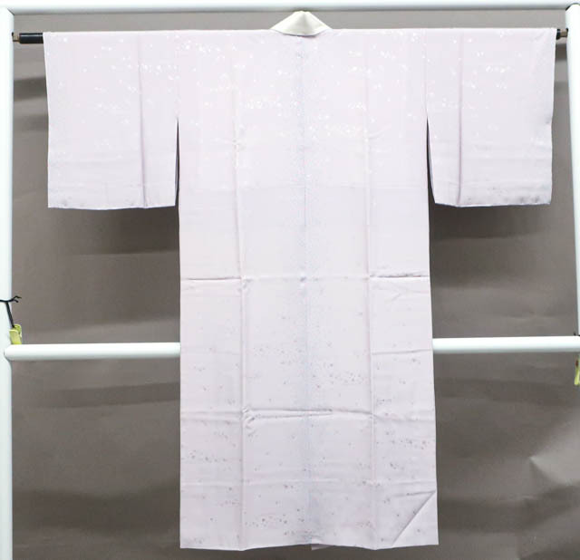 リサイクル商品のため、裏地に汚れがございますが着用可能なお品です。 袷仕立てでございます。 地色は、薄紫色です。 1枚目の画像が近いお色かと思われます。 素材は正絹です。 |