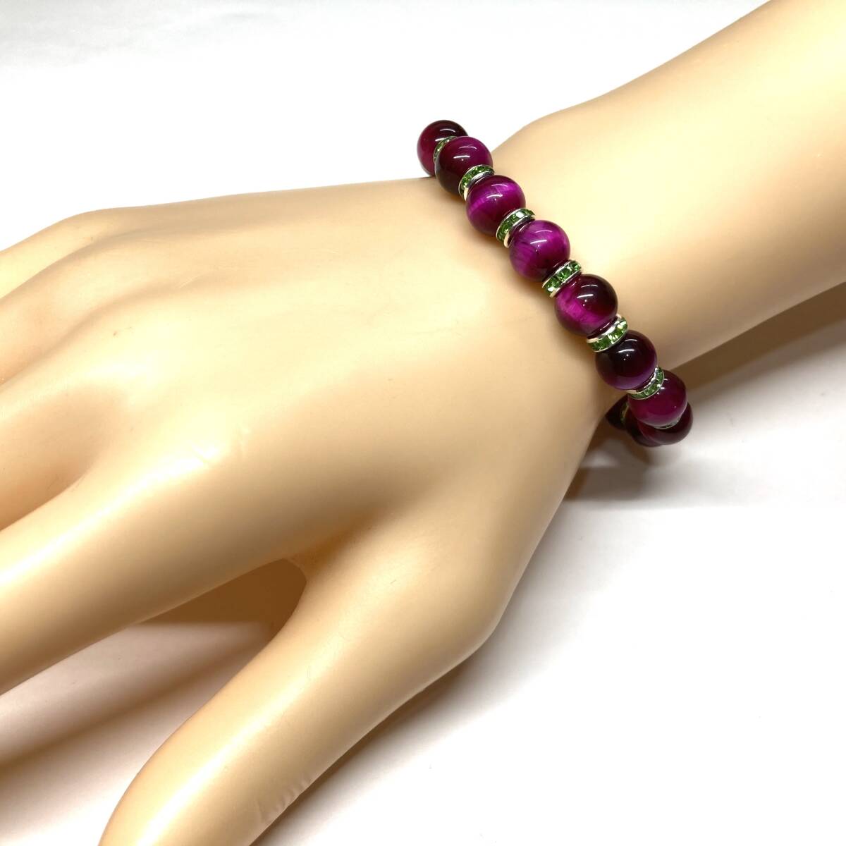 ピンクタイガーアイ パワーストーン ブレスレット 8mm (グリーン) /開運 浄化 金運 仕事運 恋愛 人間関係 効果 レディース 通販 ピンク色