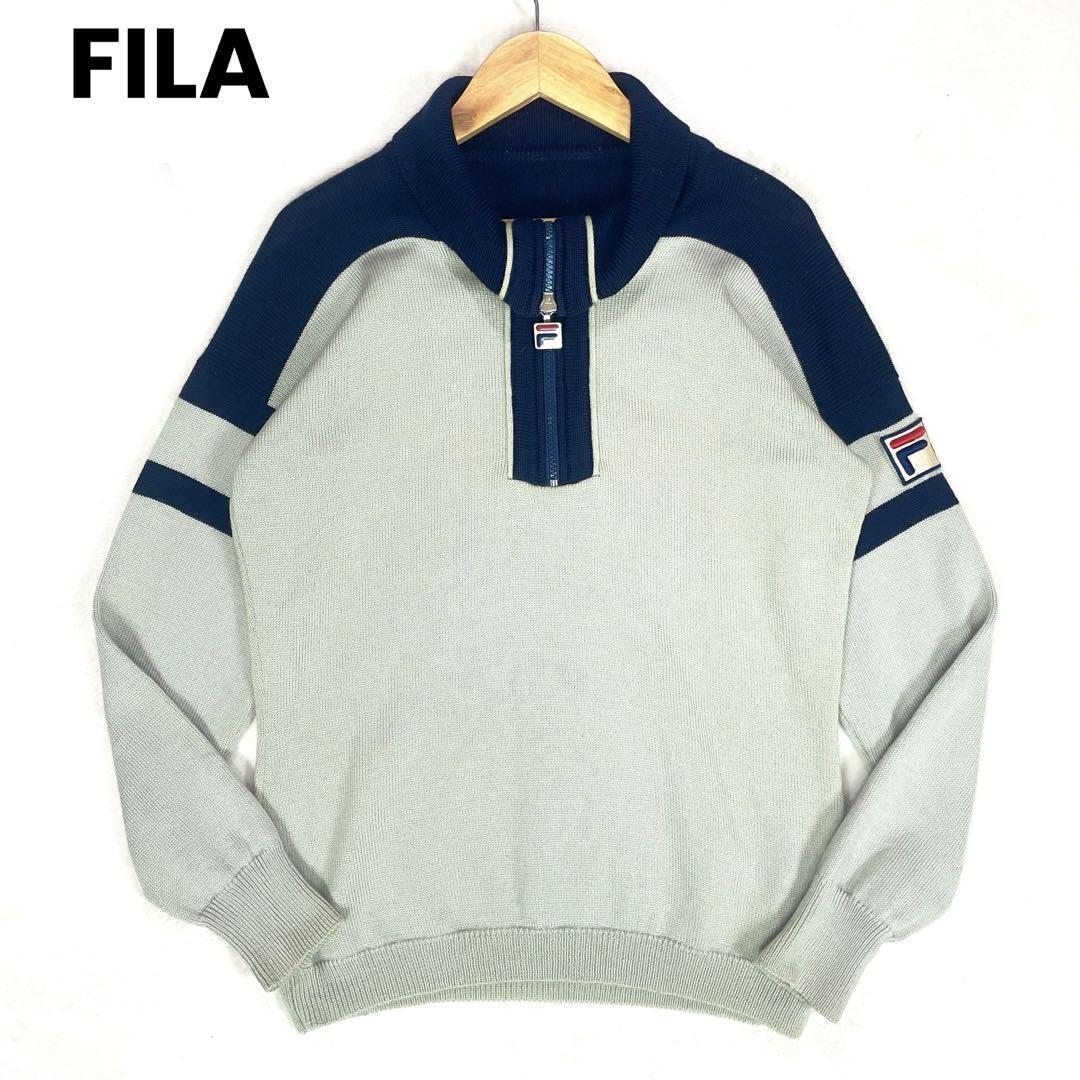 【80s日本製】 FILA ハーフジップ ウール ニット セーター M メンズ