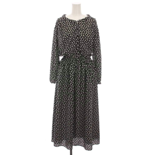 ロッソ ROSSO アーバンリサーチ ワンピース ロング 花柄 長袖 ウエストゴム F 黒 白 RA94-26B003 /YM レディース