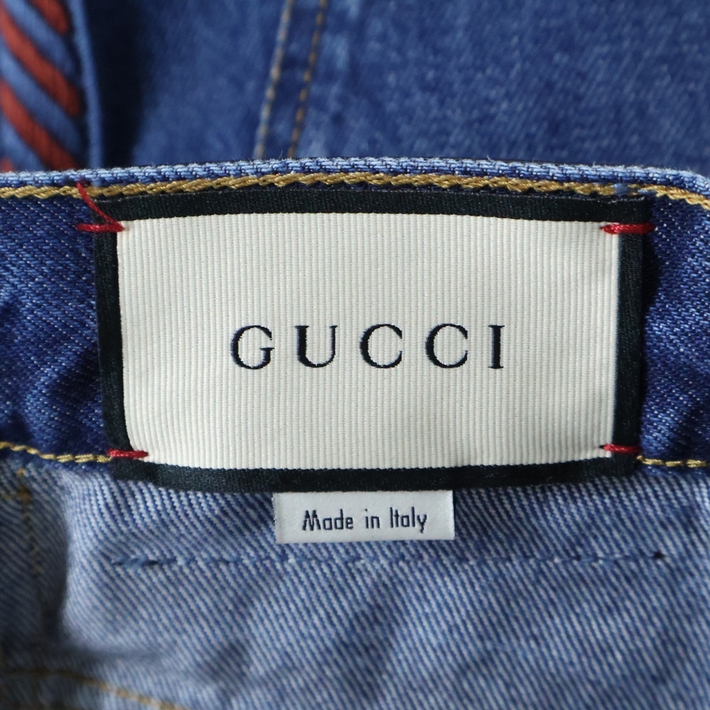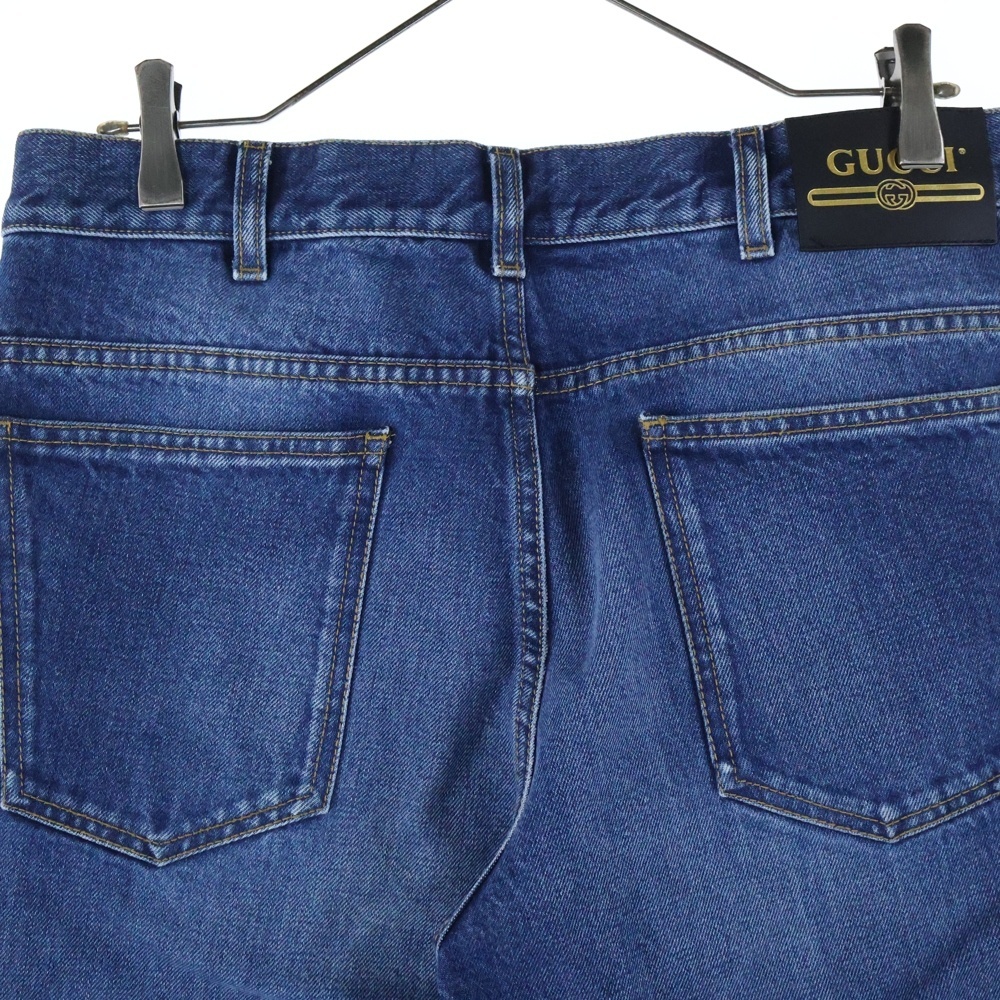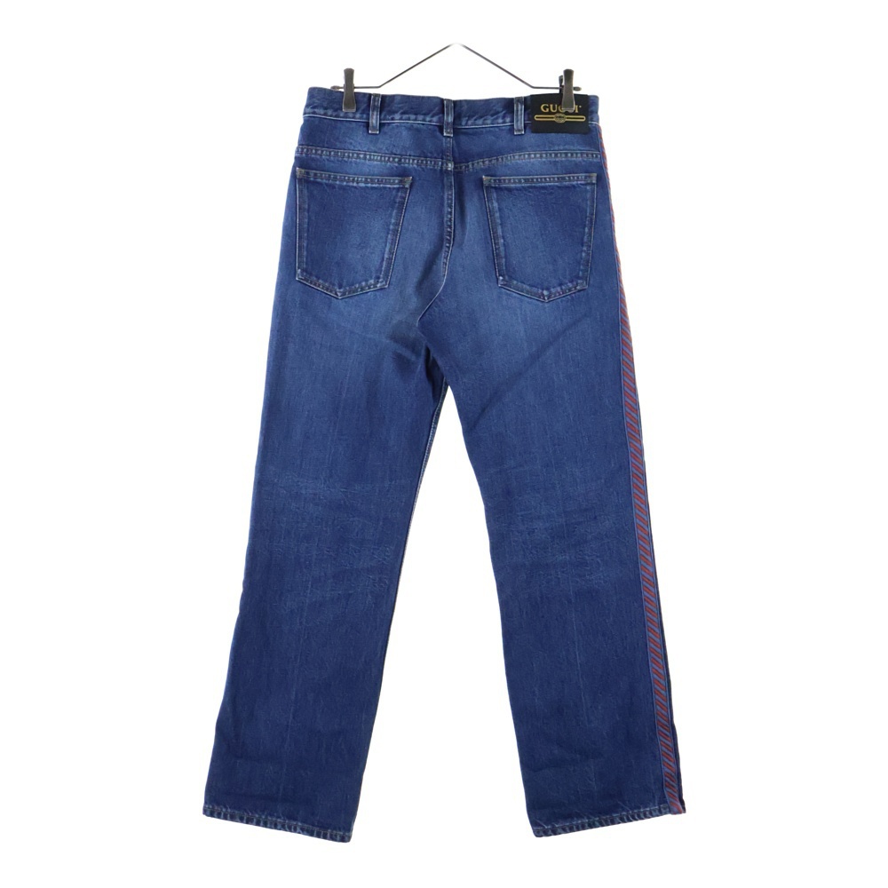 GUCCI グッチ ヴィンテージ加工 革パッチ サイドライン ジップアップ ストレートデニムパンツ インディゴ 561057
