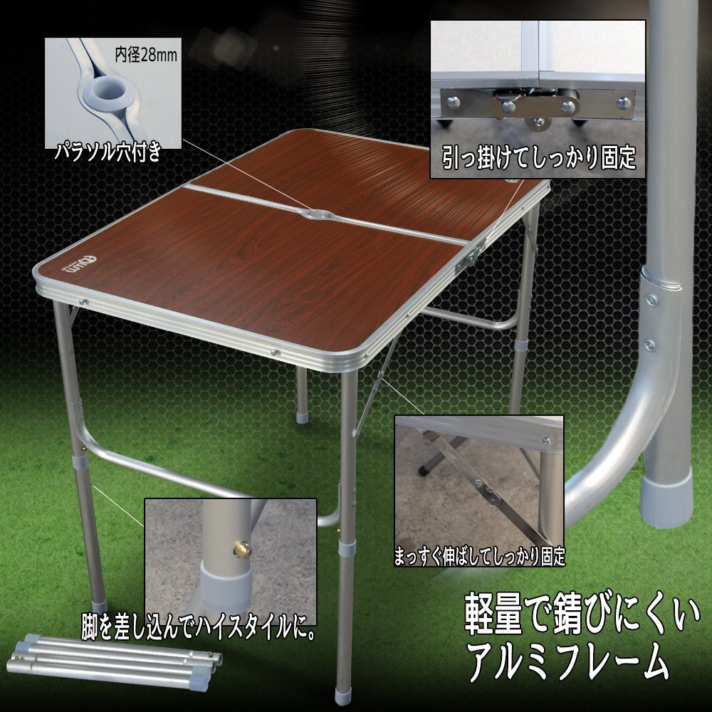 BBQやアウトドアに最適なコンパクトに折りたためるおしゃれなピクニックテーブル!! 車のトランクに入れる時や持ち運びの際にもとても便利な取っ手付きで持ち運びもラクラク!! サビに強いアルミを使用。 テーブルは2段階の高さ調節ができ、お好みのスタイルに合わせて 天板中心部にはパラソル用ホールがあるので、ベランダやテラスでの使用にもおススメです。 キャンプ、バーベキュー、お花見などにとても便利。 ■商品仕様■ |