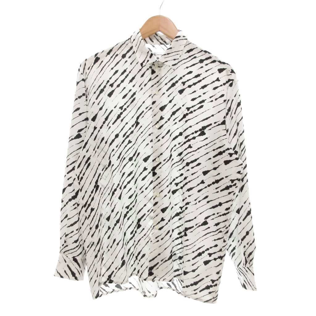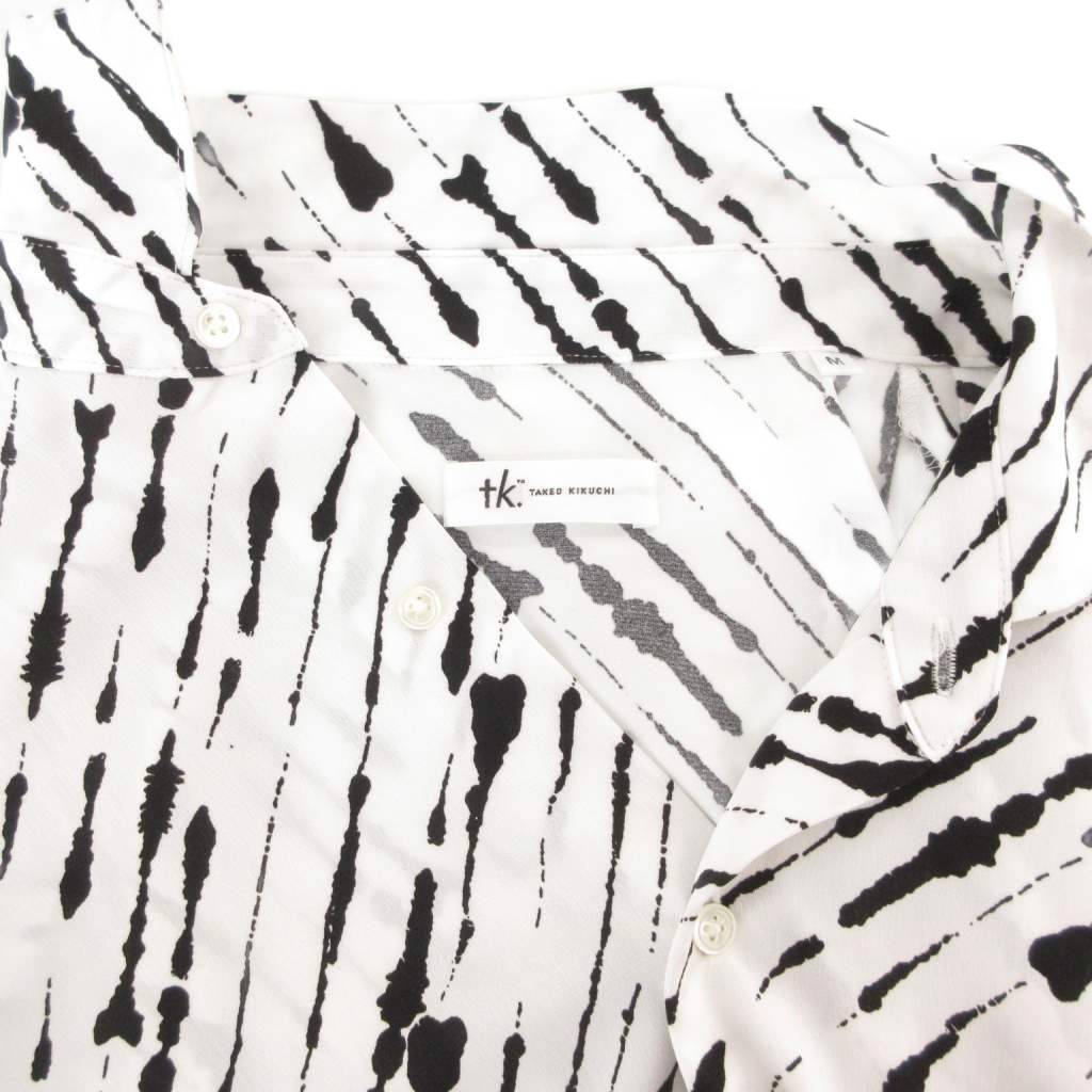 タケオキクチ TAKEO KIKUCHI ブラッシュペイント長袖シャツ 総柄 オーバーサイズ M ホワイト ブラック /UO メンズ