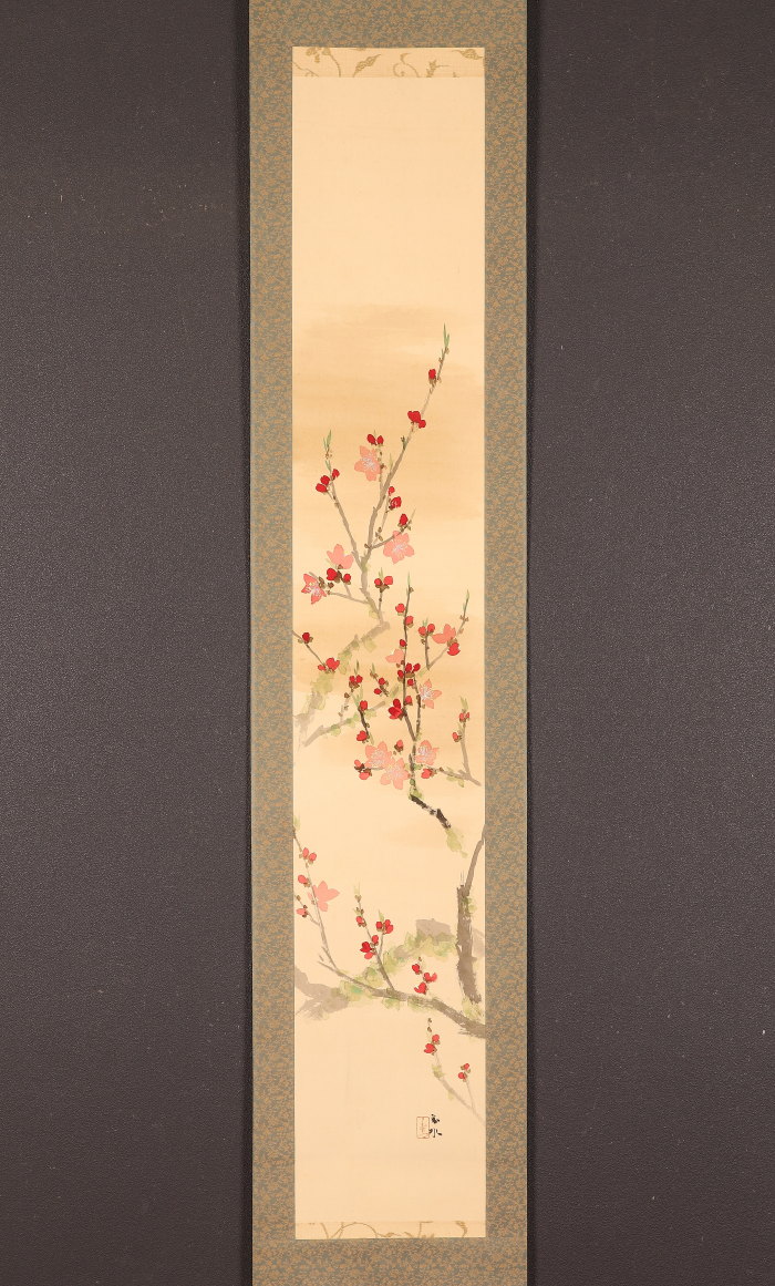 【真作】【伝来_弐】●dr3018〈須磨対水〉桃図 共箱 大阪の人 久保田桃水師事