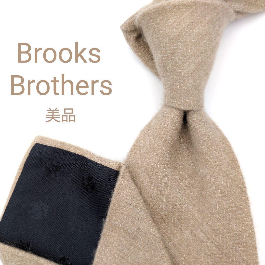 【美品】ブルックスブラザーズ ネクタイ ベージュ 無地 ソリッド 高級 USA製