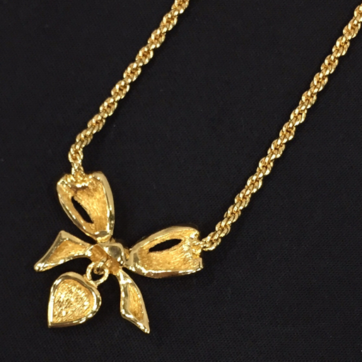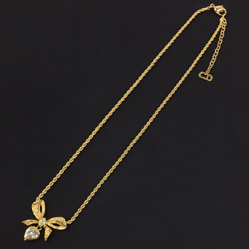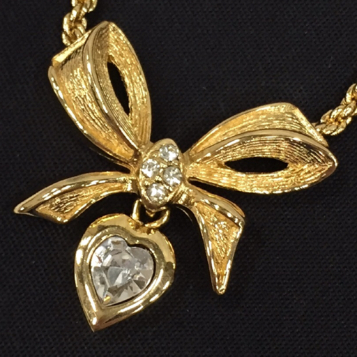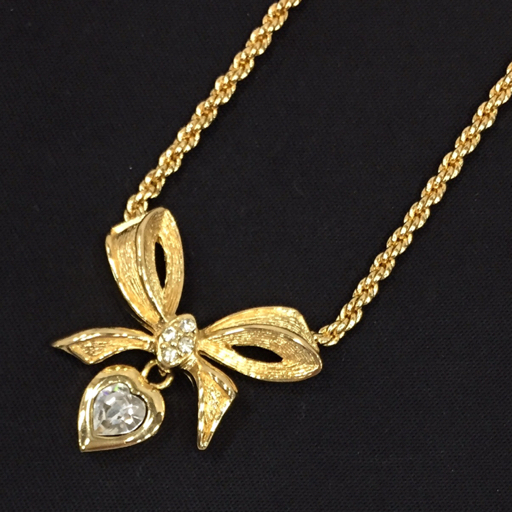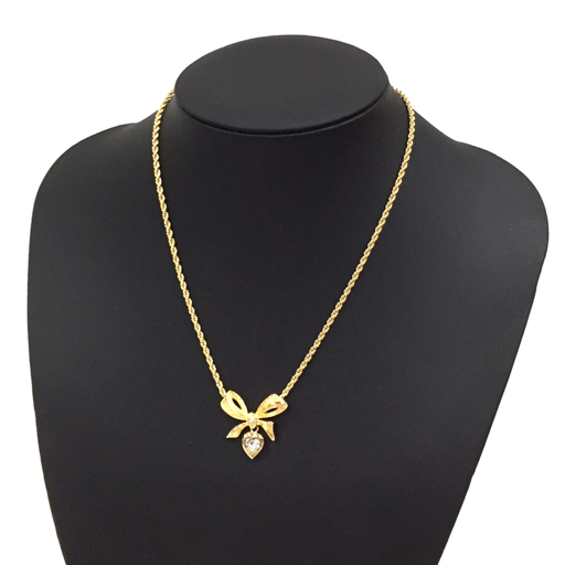 クリスチャンディオール ハート リボン ラインストーン ネックレス ゴールドカラー 保存箱付 Christian Dior QH102-91 |