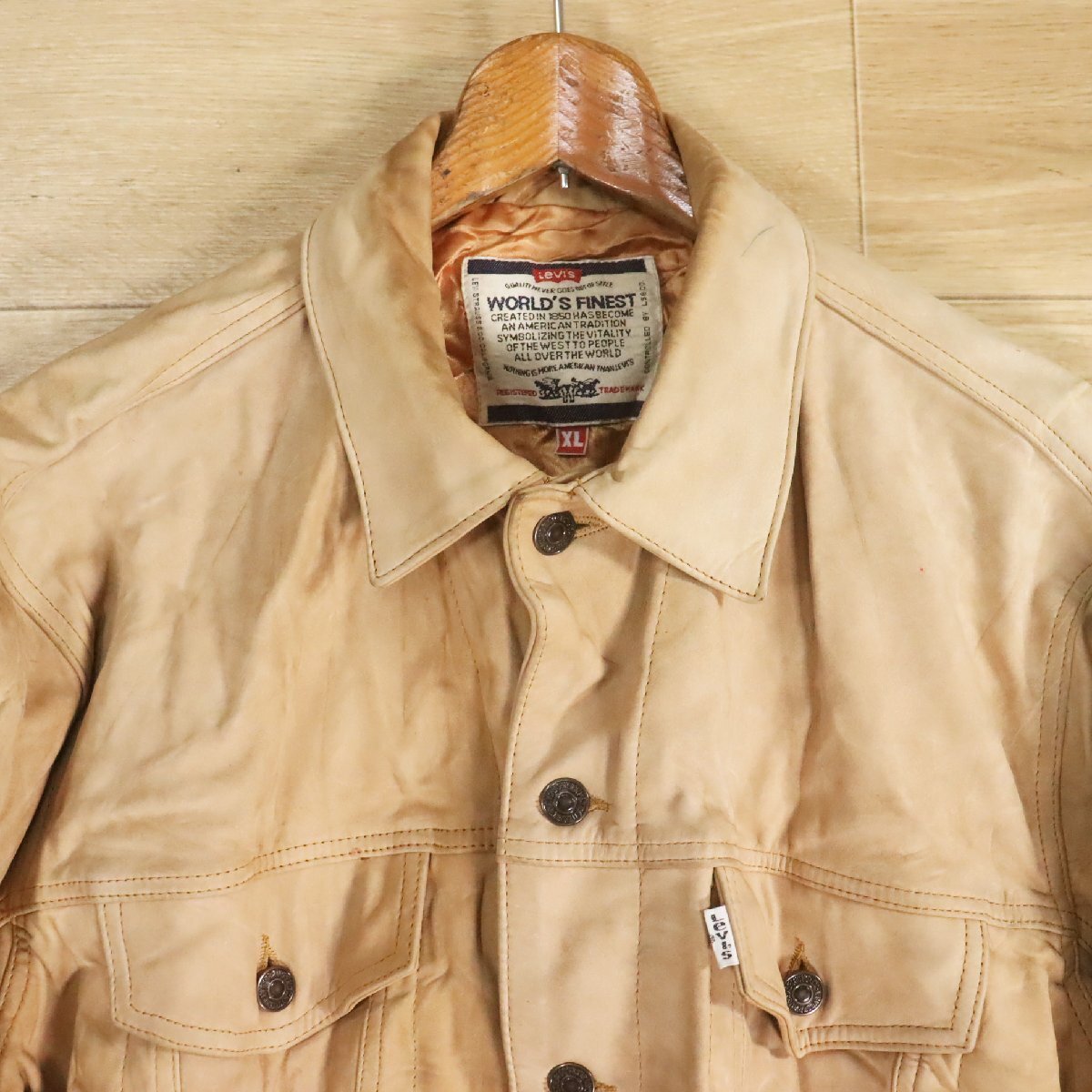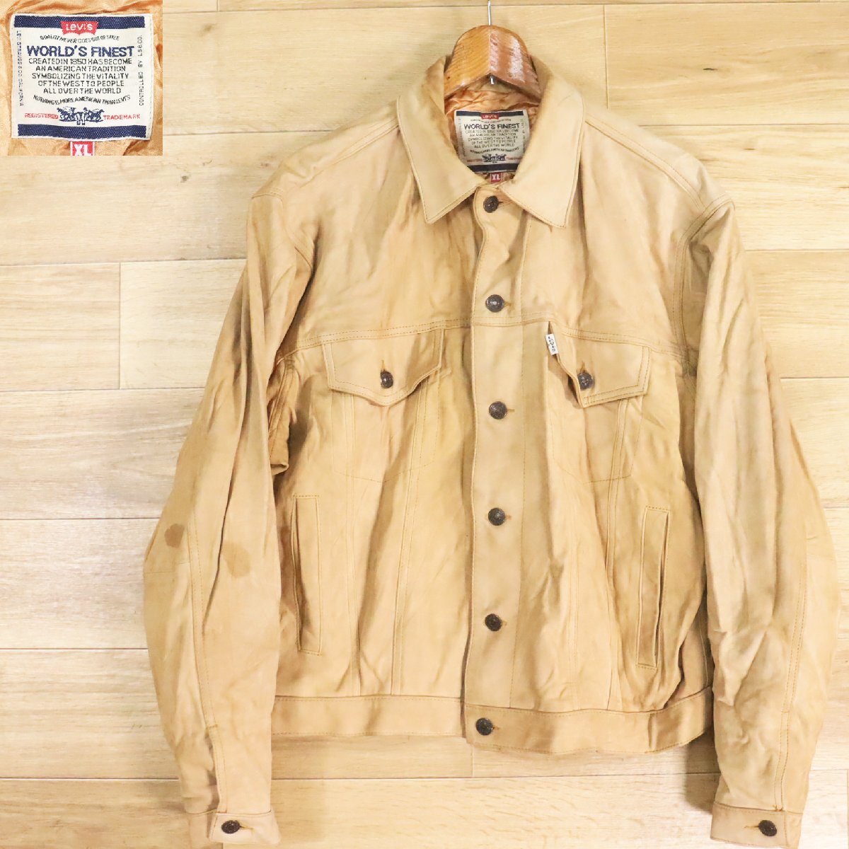 X5T/Y7.22-3 アメリカ古着 Levi's リーバイス レザージャケット 本革 トラッカージャケット XL レザージージャン