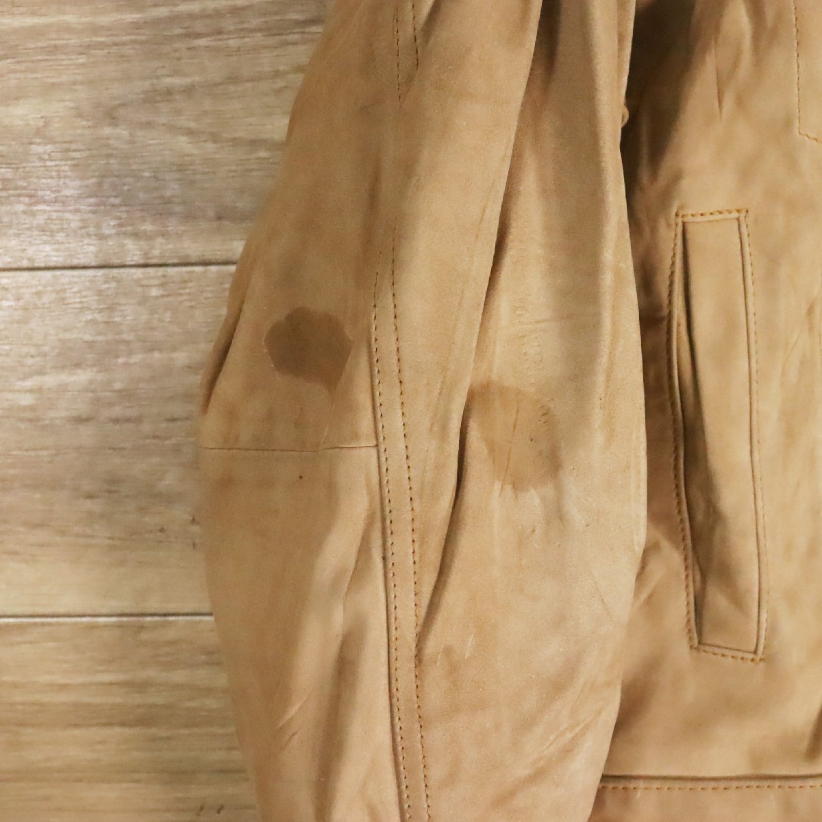 中古品です。使用感があります。写真にあるように袖にシミがあります。他は大きなダメージはありません。