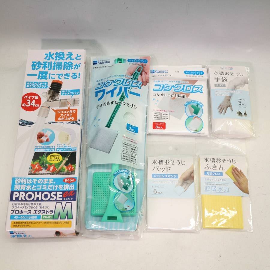 【Mサイズ】プロホースエクストラS 8点セット (コケクロスワイパーミニ+コケクロスハーフ3個+水槽おそうじ手袋+パッド+ふきん)◆271f34