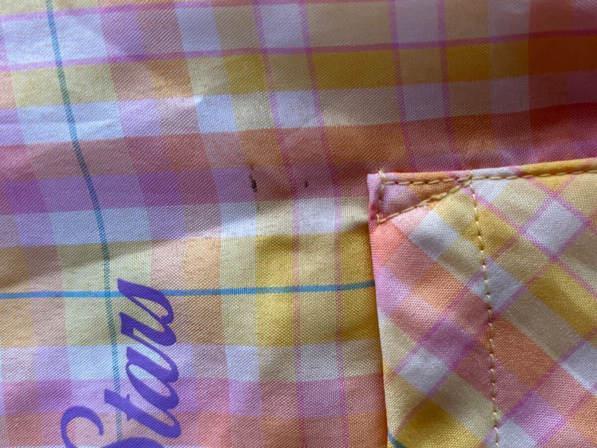 着用感があります,左のポケットにピンの跡が付いています(写真) 気になさる方はご遠慮下さい。