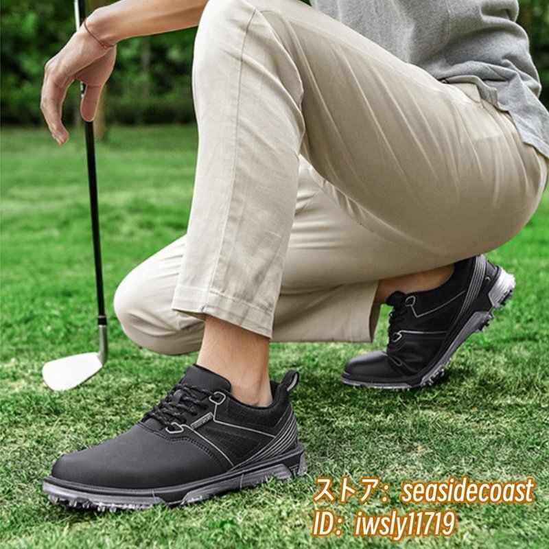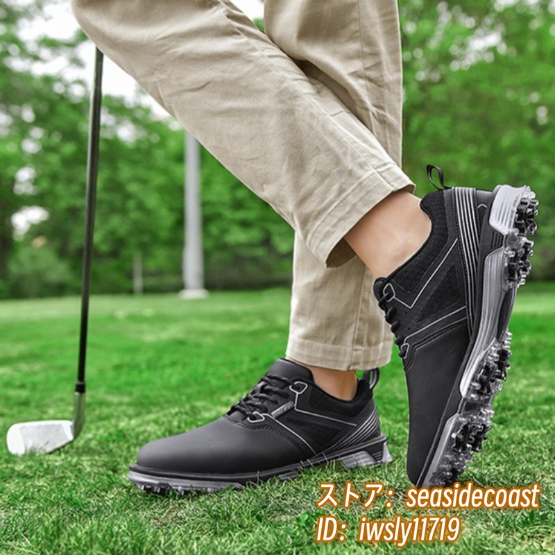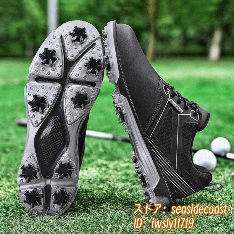 高級品 メンズ ゴルフシューズ 運動靴 フィット感 スポーツシューズ スパイク 強いグリップ 軽量 弾力性 通気性 防滑耐磨 撥水 黒 26.0cm
