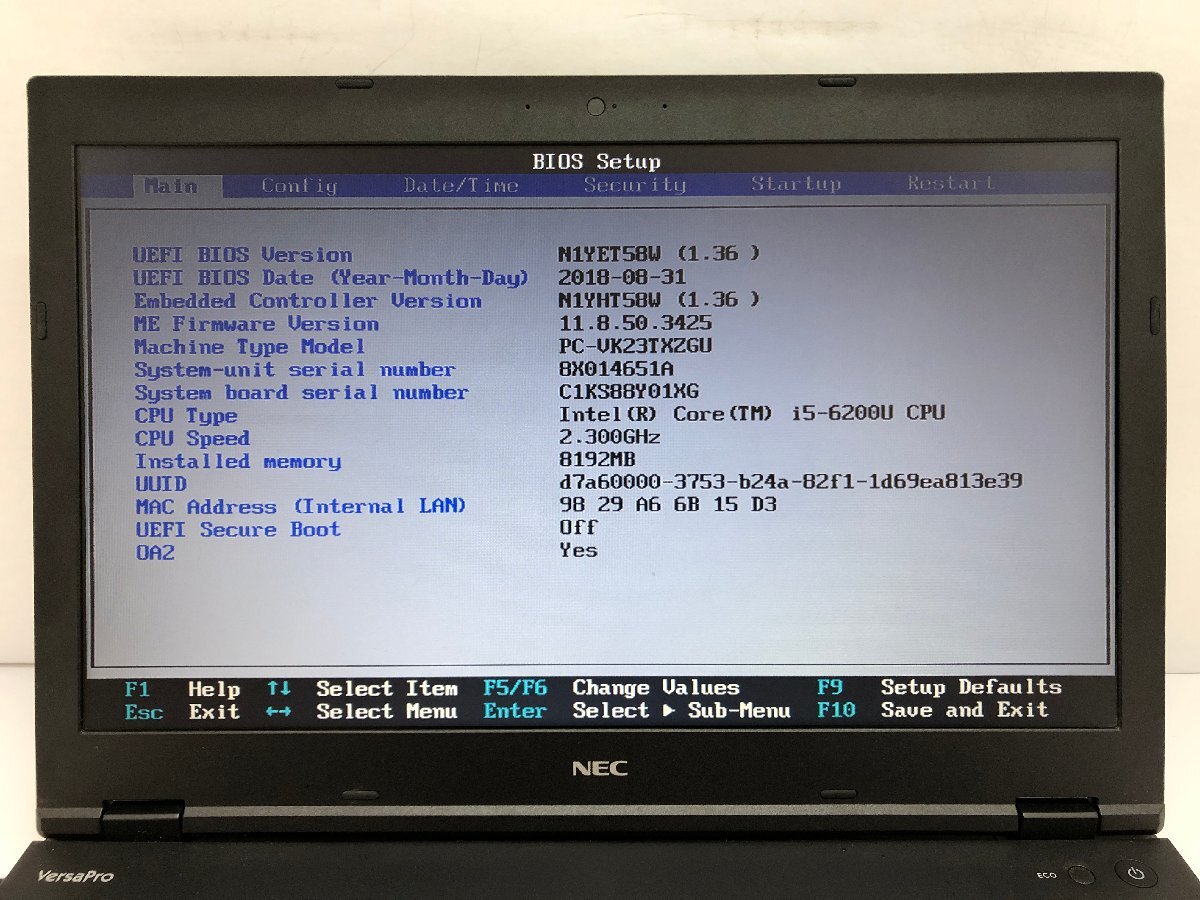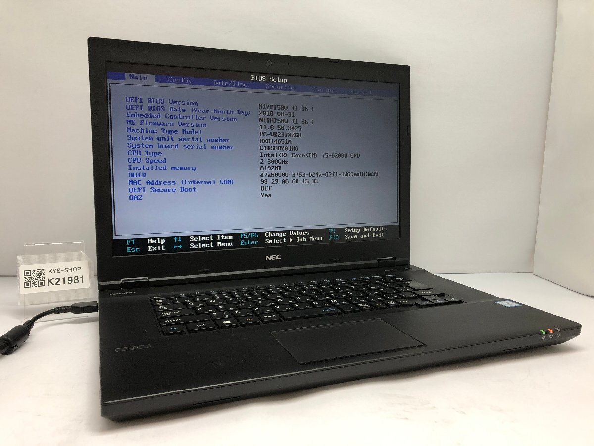 ジャンク/ NEC PC-VK23TXZGU Intel Core i5-6200U メモリ8.19GB ストレージ無し 【K21981】