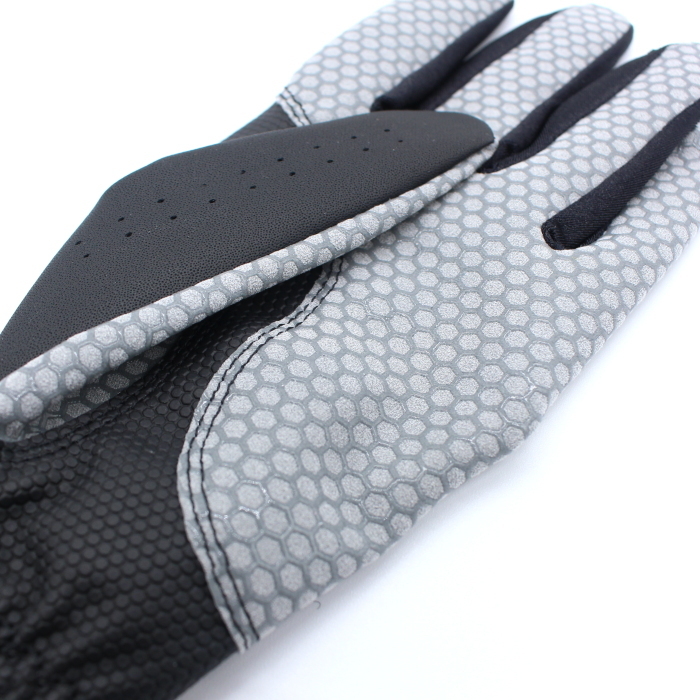| 【驚異のグリップ力、心地よい伸縮性能】 ・シリコン樹脂加工の生地で、滑りを防止し、優れたグリップ力を発揮。 ・甲部分と指間部分に伸縮性に優れたストレッチ素材を使用。 ・悪条件下のプレイでもグリップを強力にサポートします。 | |