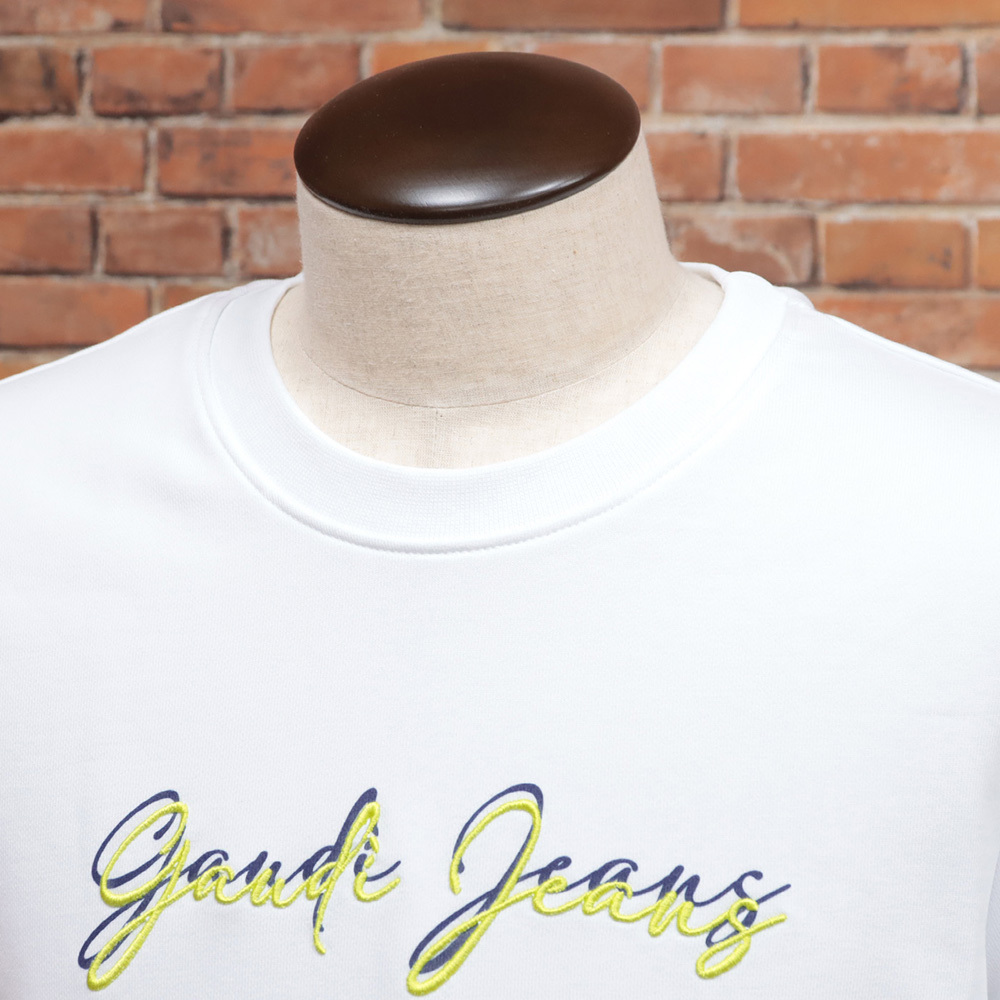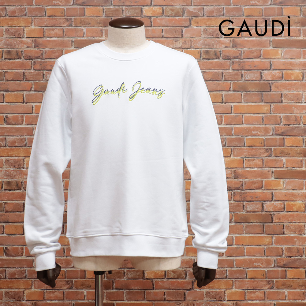 25春夏/GAUDI/Lサイズ/トレーナー C511GU64056 スウェット伸縮 ロゴ刺繍 イタリア製 ガウディ 新作 新品/白/ホワイト/kf201/