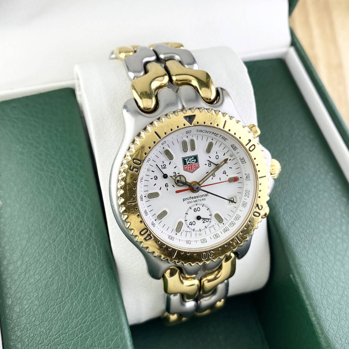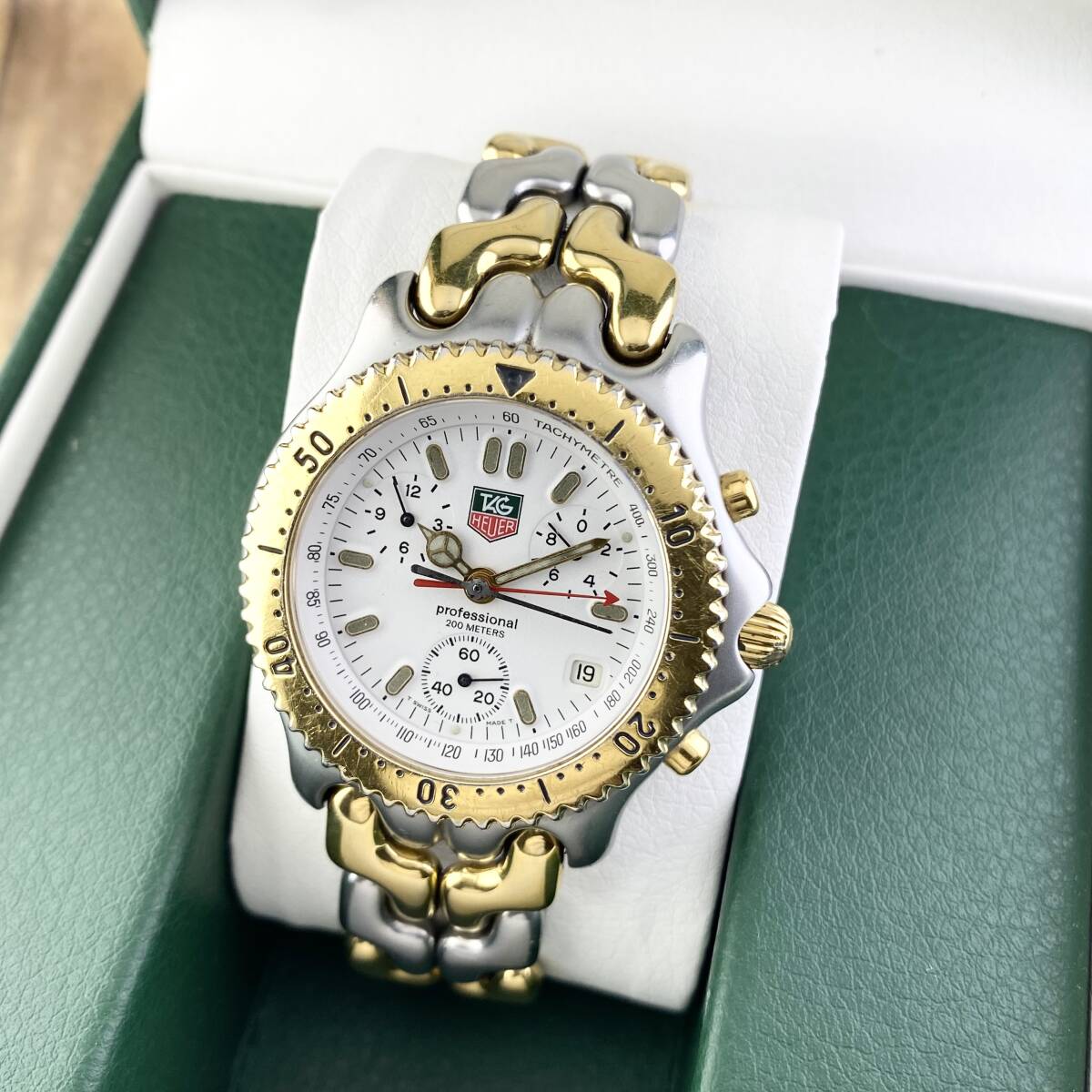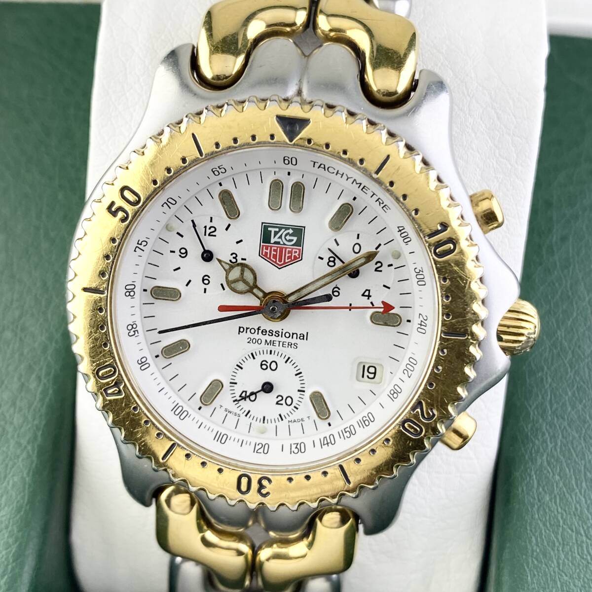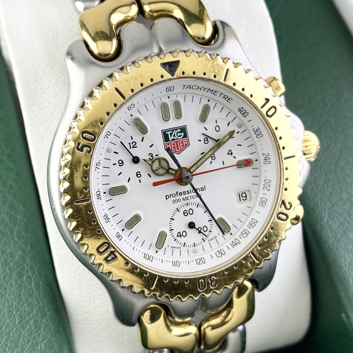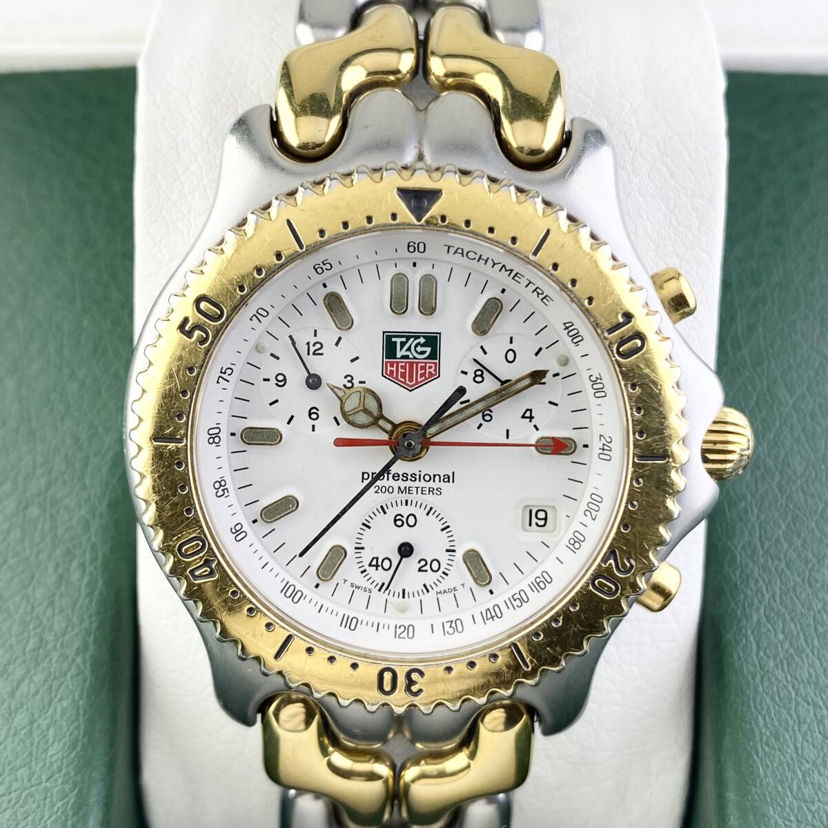 【1円〜】TAG HEUER タグ ホイヤー 腕時計 メンズ S35.006 クロノグラフ セル ホワイト字盤 ゴールド プロフェッショナル 200m 可動品 | |||