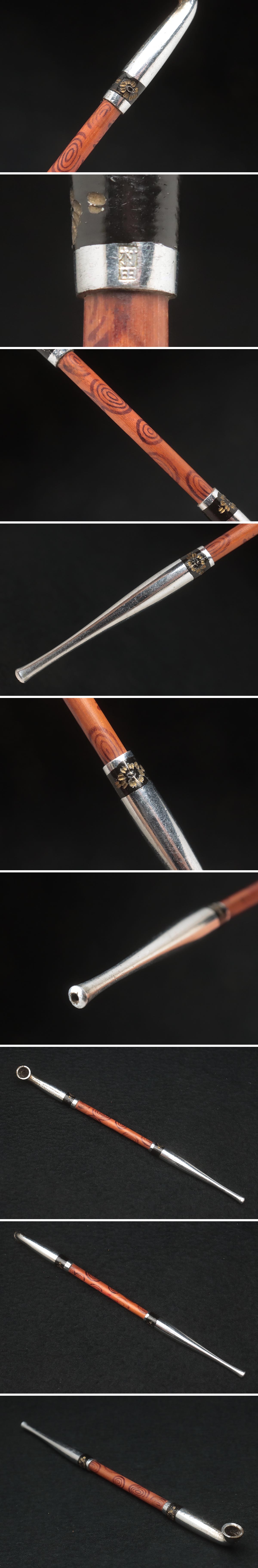 ◆ 時代喫煙具【村田製】鍍銀 菊彫図 煙管 全長19.8cm 重25g・村田煙管・キセル 古金工 古美術 ◆