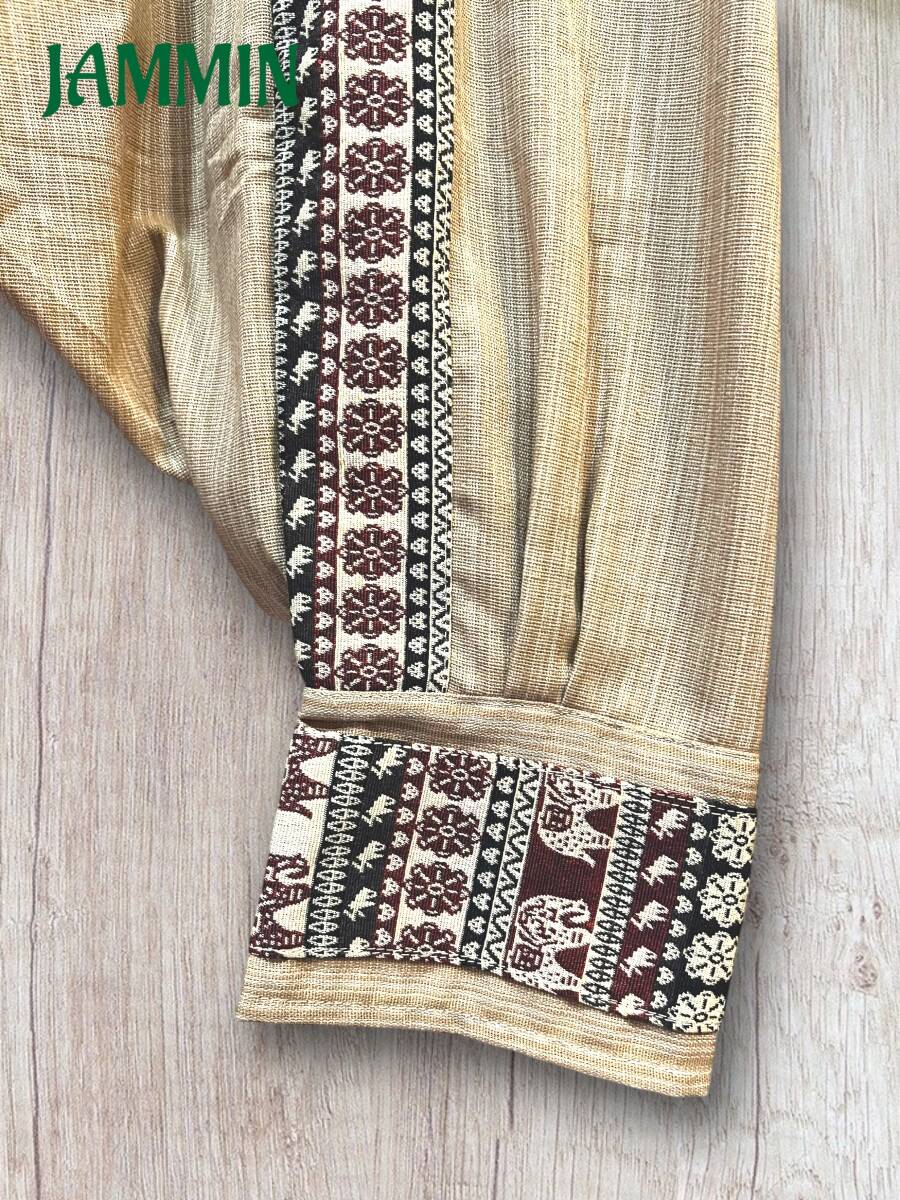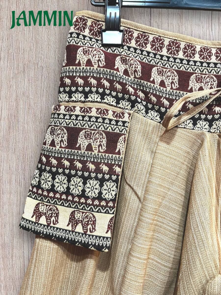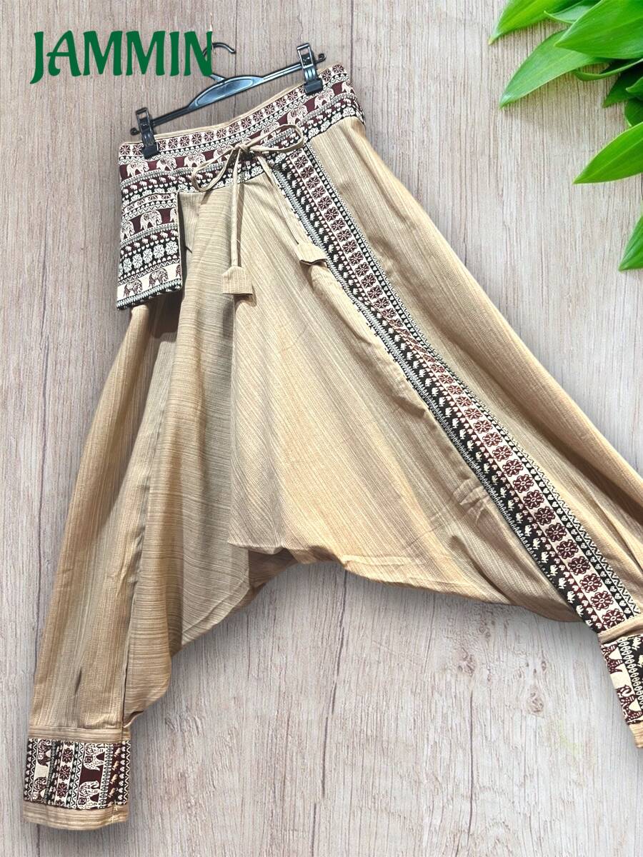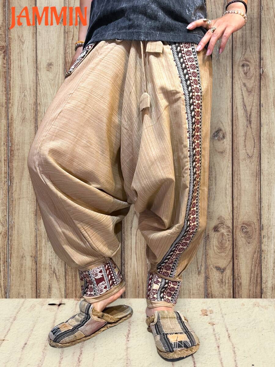 織り柄生地付きサルエルパンツ ベージュ アジアン エスニック 男女兼用