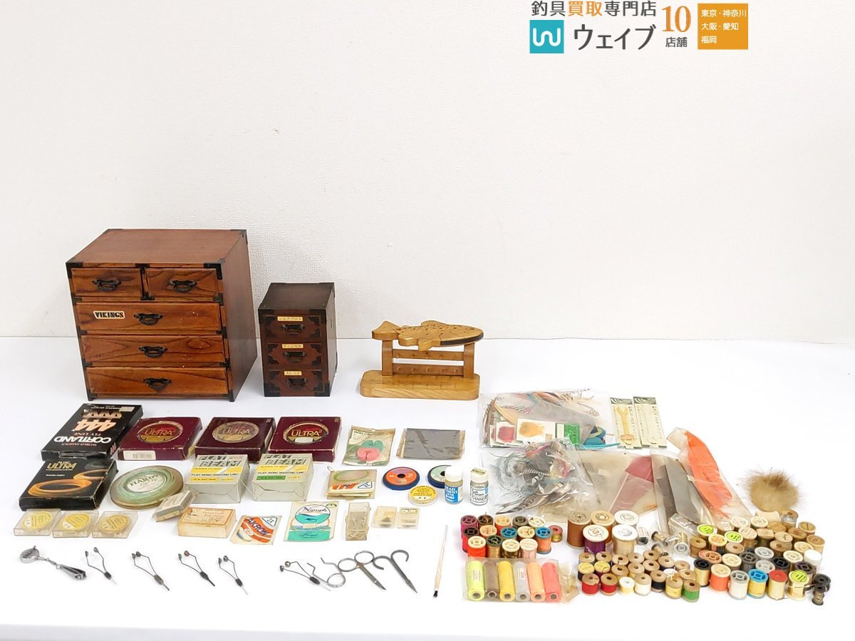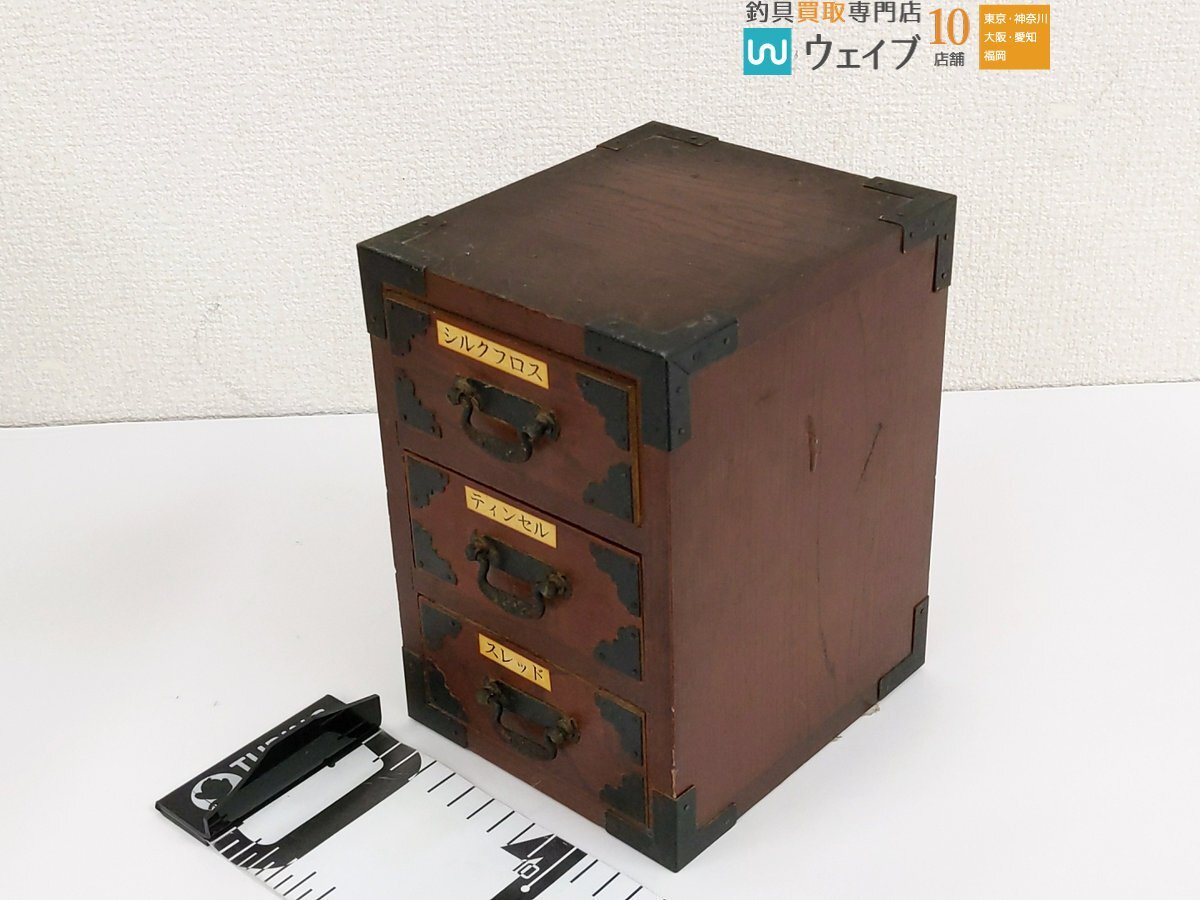 | 商品名 | スレッド・羽根・フライライン 他 フライタイインツール フライマテリアル など まとめセット 木製 引出しケース付き ジャンク品 |