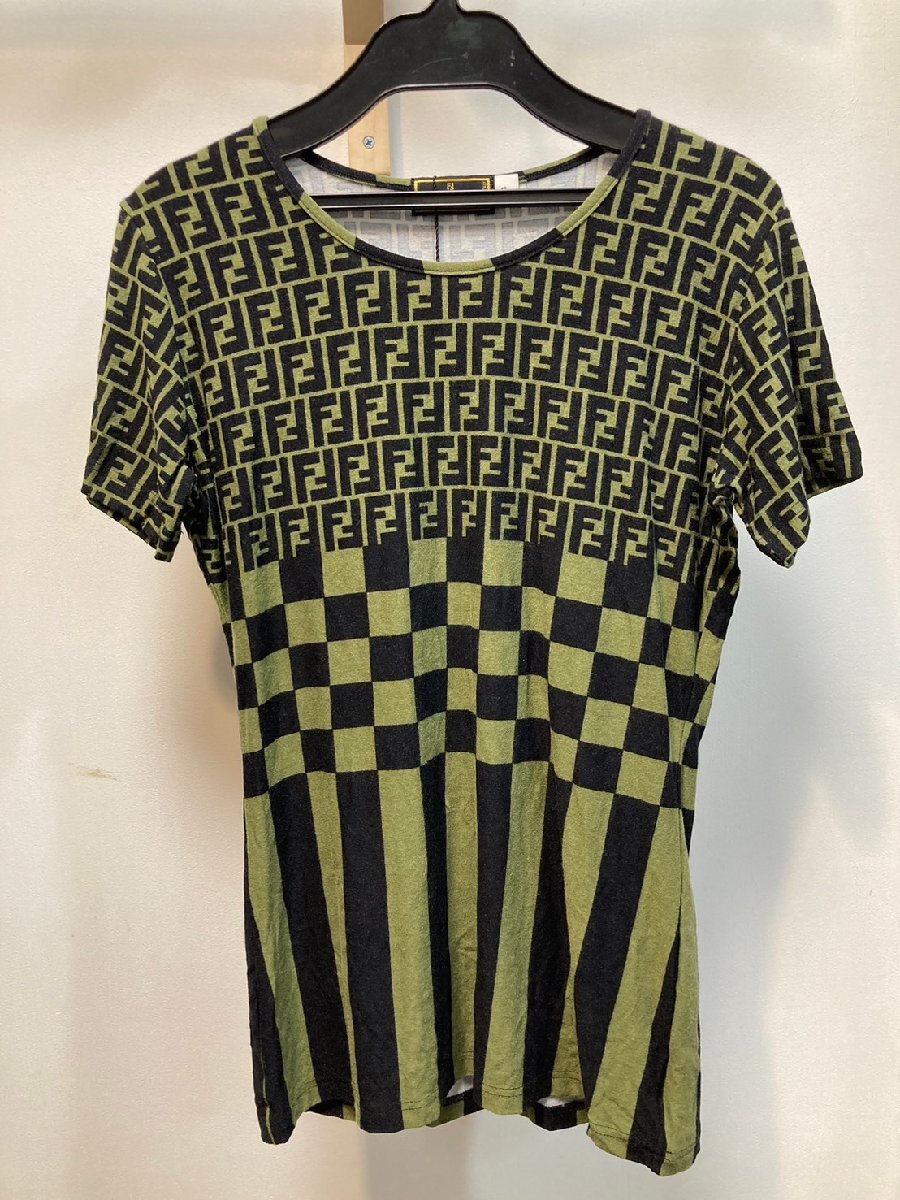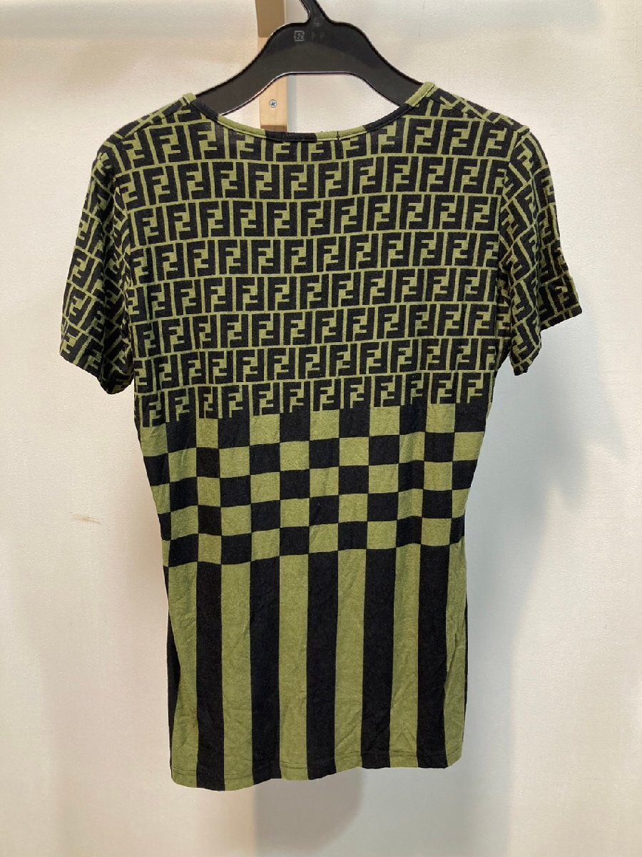 ◆未使用 保管品 FENDI フェンディ Tシャツ サイズ44 ズッカ柄 グリーン系◆15820